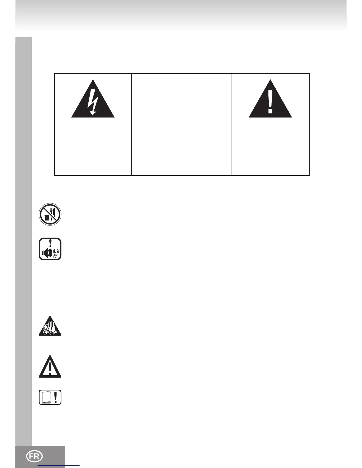 fentes ou autres ouvertures de l’appareil. Cela pourrait entraîner la mort par décharge