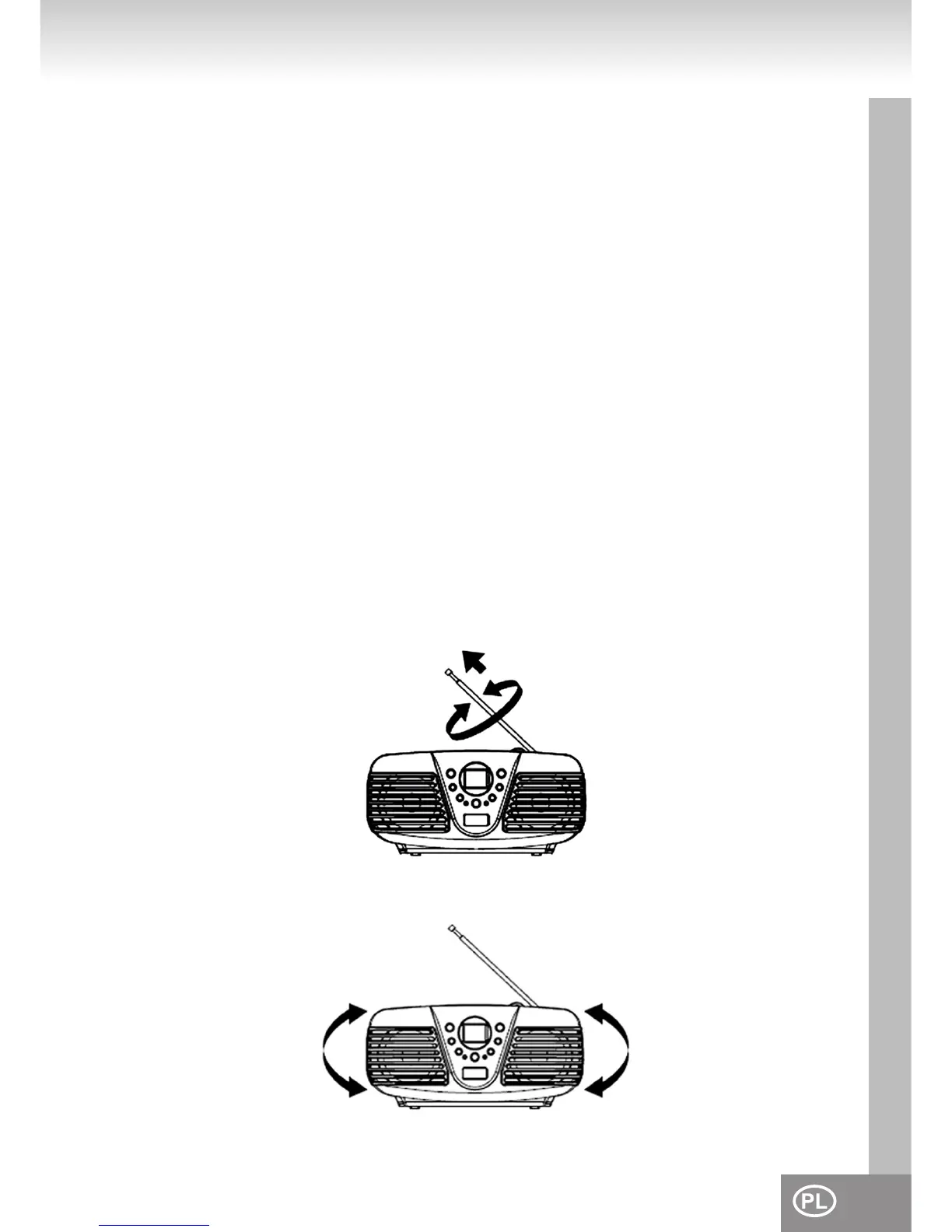 FM: Całkowicie rozwiń antenę teleskopową (1) i obróć nią w celu uzyskania lepszego odbioru.
