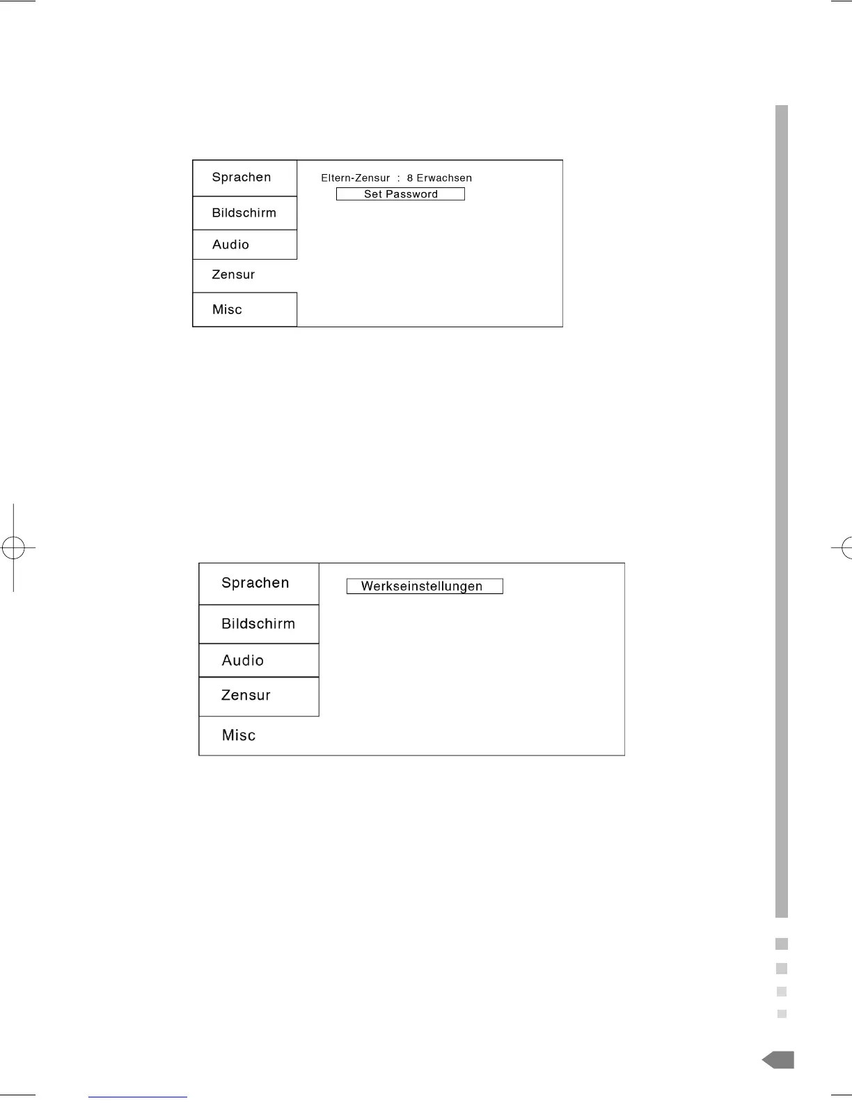 Wählen Sie Eltern Zensur aus, und drücken Sie ENTER, um eine andere Variante auszuwählen.
