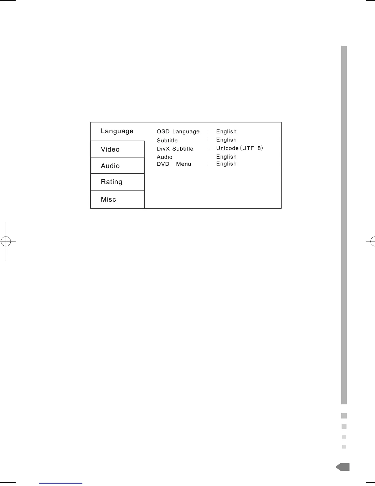 DivX Subtitle setting is used for choosing the language domain, (only for DivX). After select one language domain (alphabet),