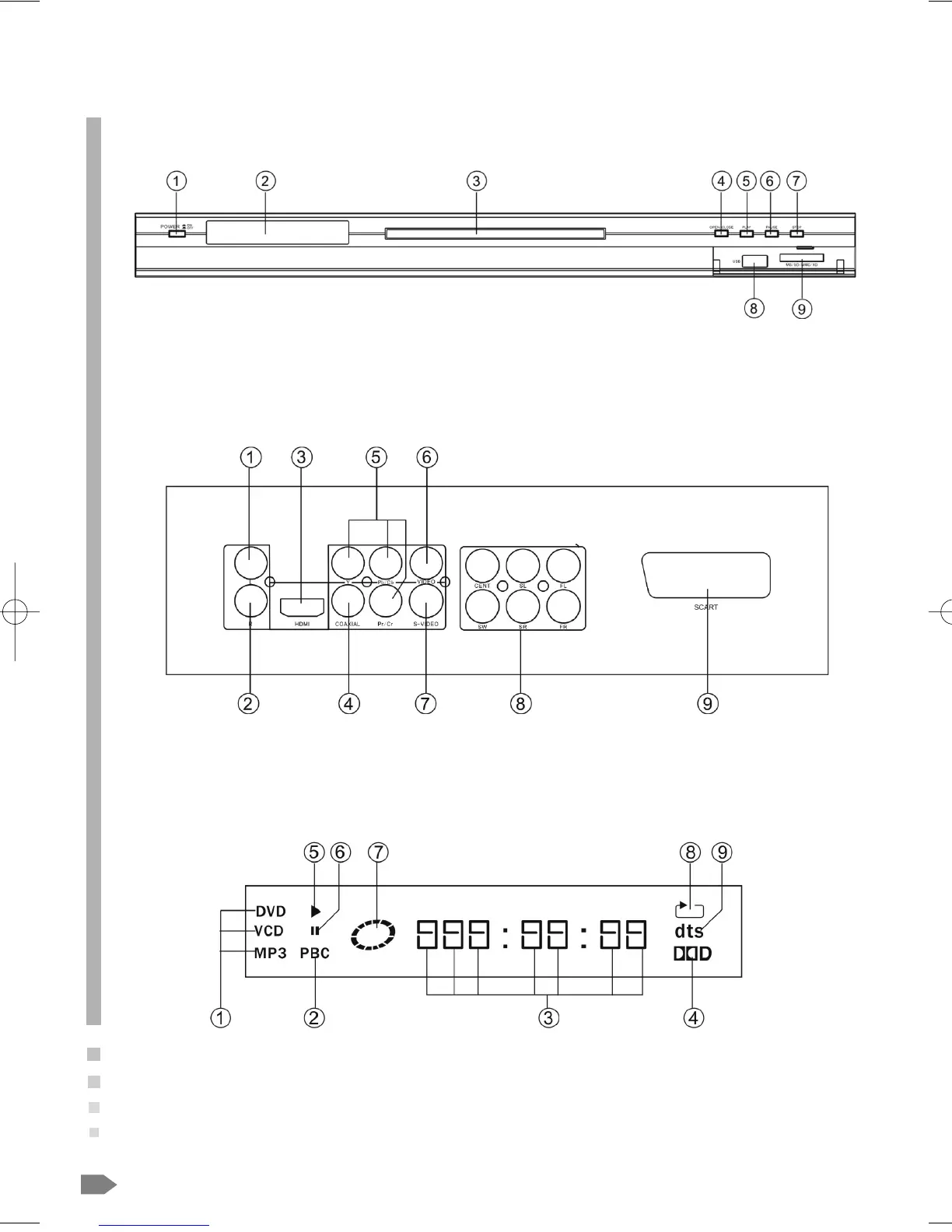 3. Anzeige Kaitel-Zeit 6. Anzeige Pause 9. Anzeige DTS