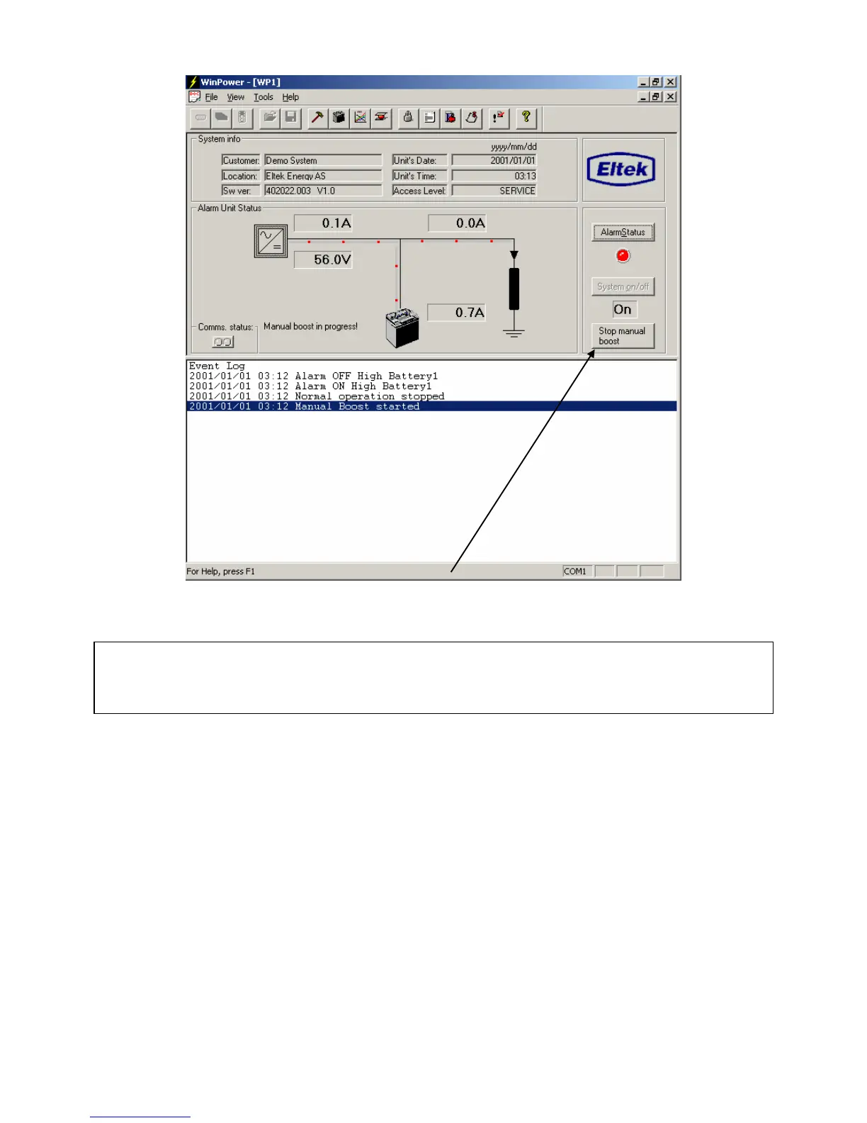 The boost charge can be stopped by clicking a dedicated STOP button underneath the system ON indicator in the main