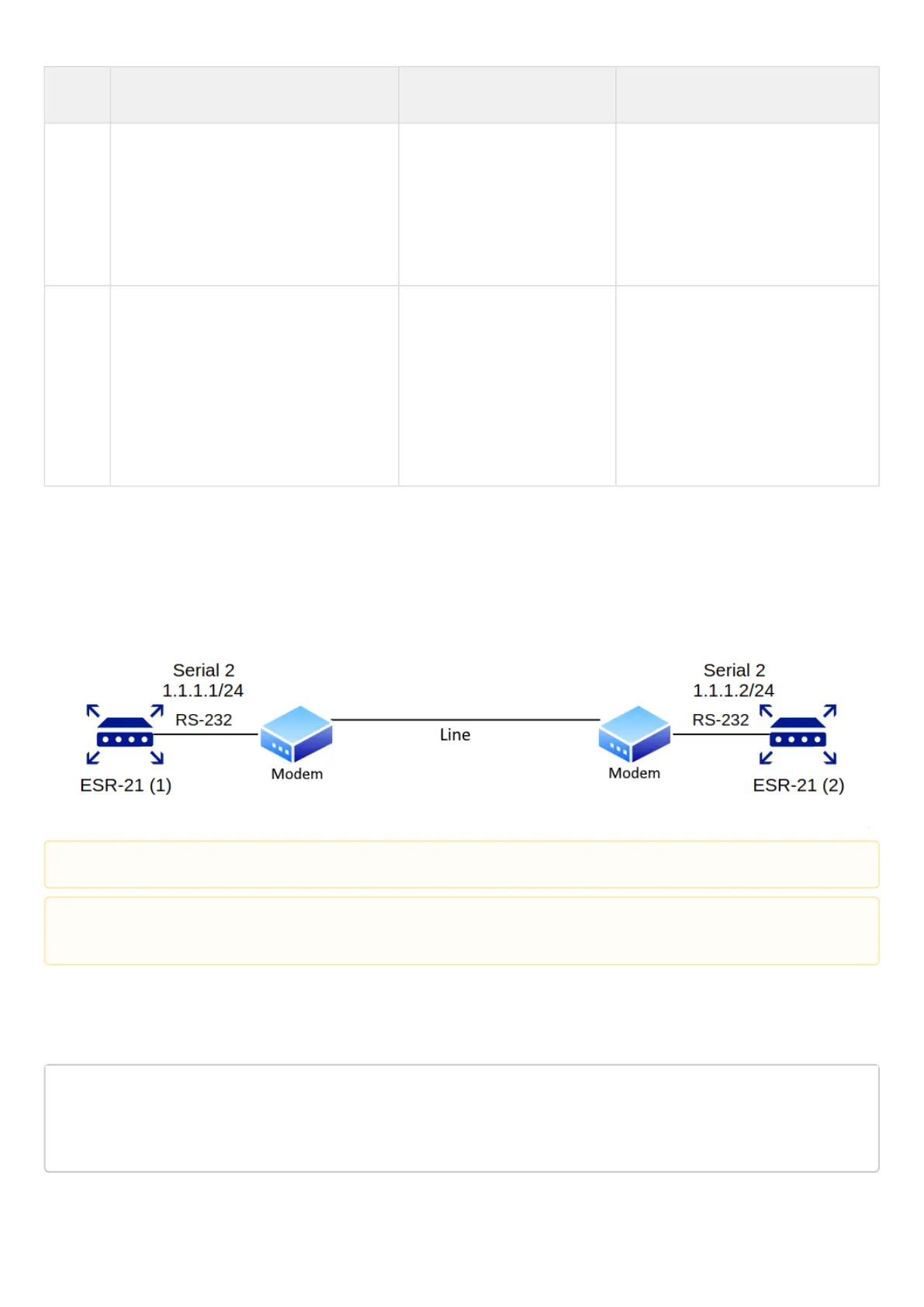 Configure IP communication between two ESRs on the serial port, using modems in Leased line mode