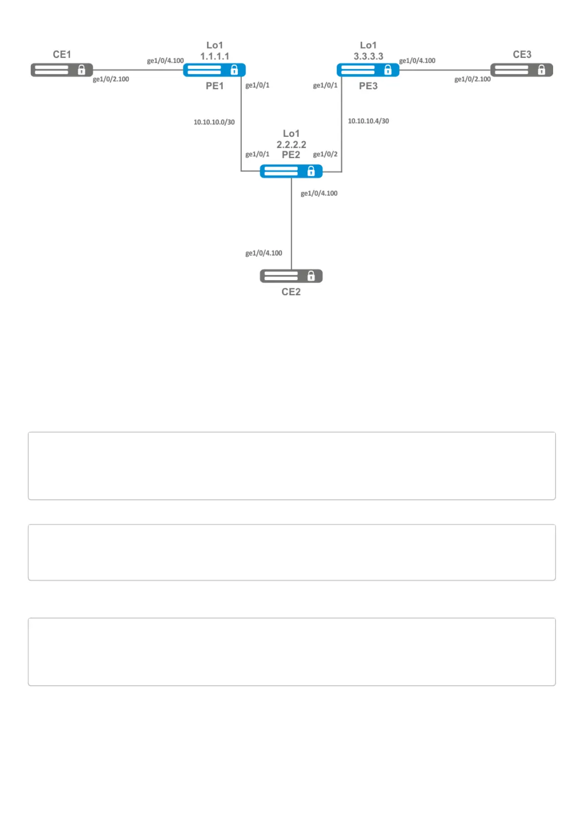 Organize the exchange of routes between PE1, PE2 and PE3 using IGP (OSPF, IS-IS).