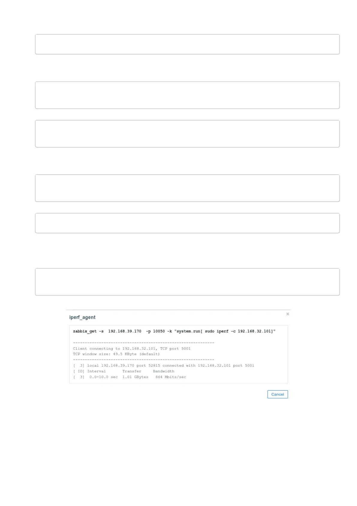 zabbix_get -s {HOST.CONN} -p 10050 -k "system.run[ sudo iperf -c 192.168.32.101 -u -b 100K