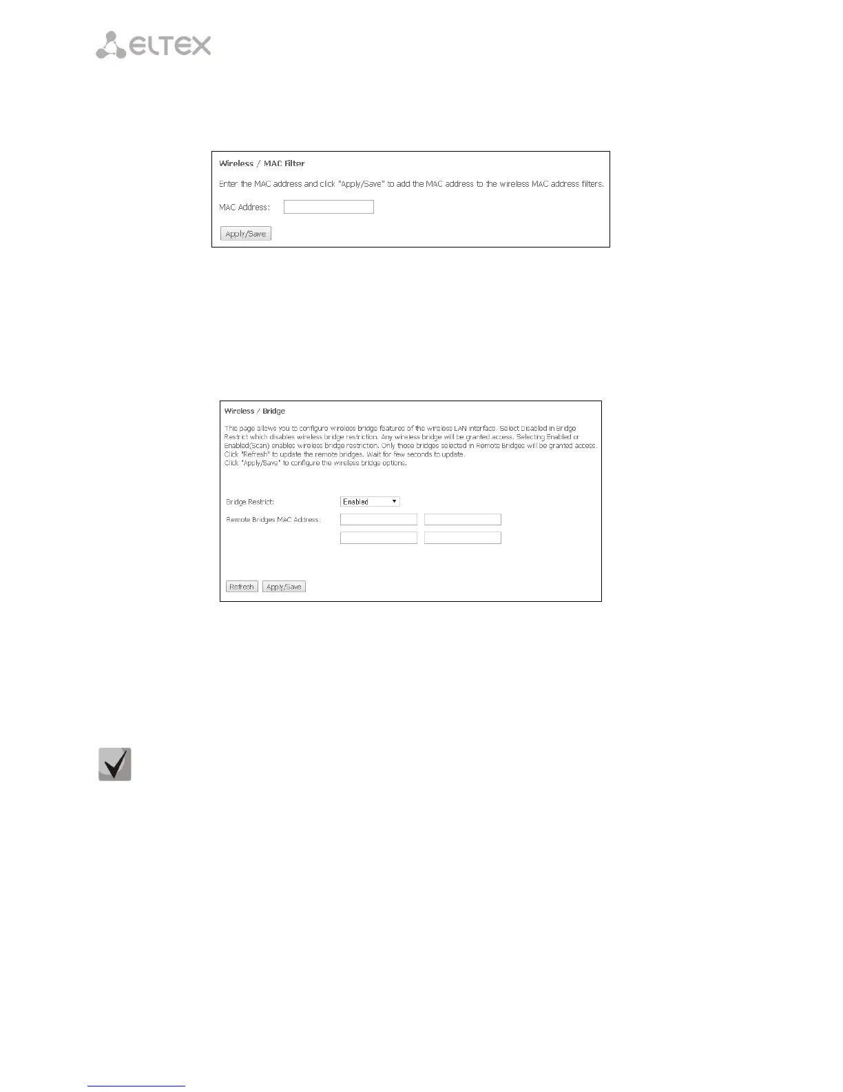 The Wireless Bridge mode has the following settings: