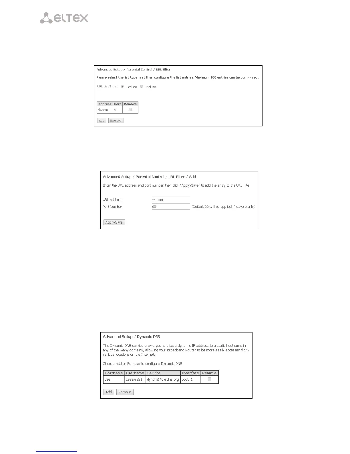 4.3.5.2 The Url Filter Submenu. Internet Access Restriction Settings