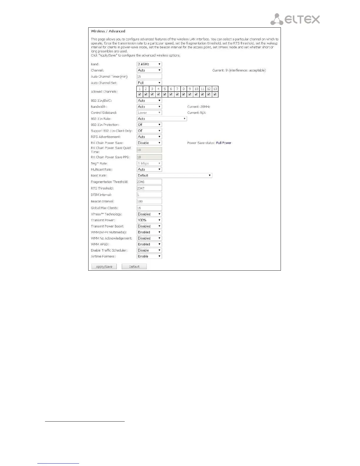 – Legacy—autoselection scans a set of channels supported by old devices (for 2.4 GHz range only) to