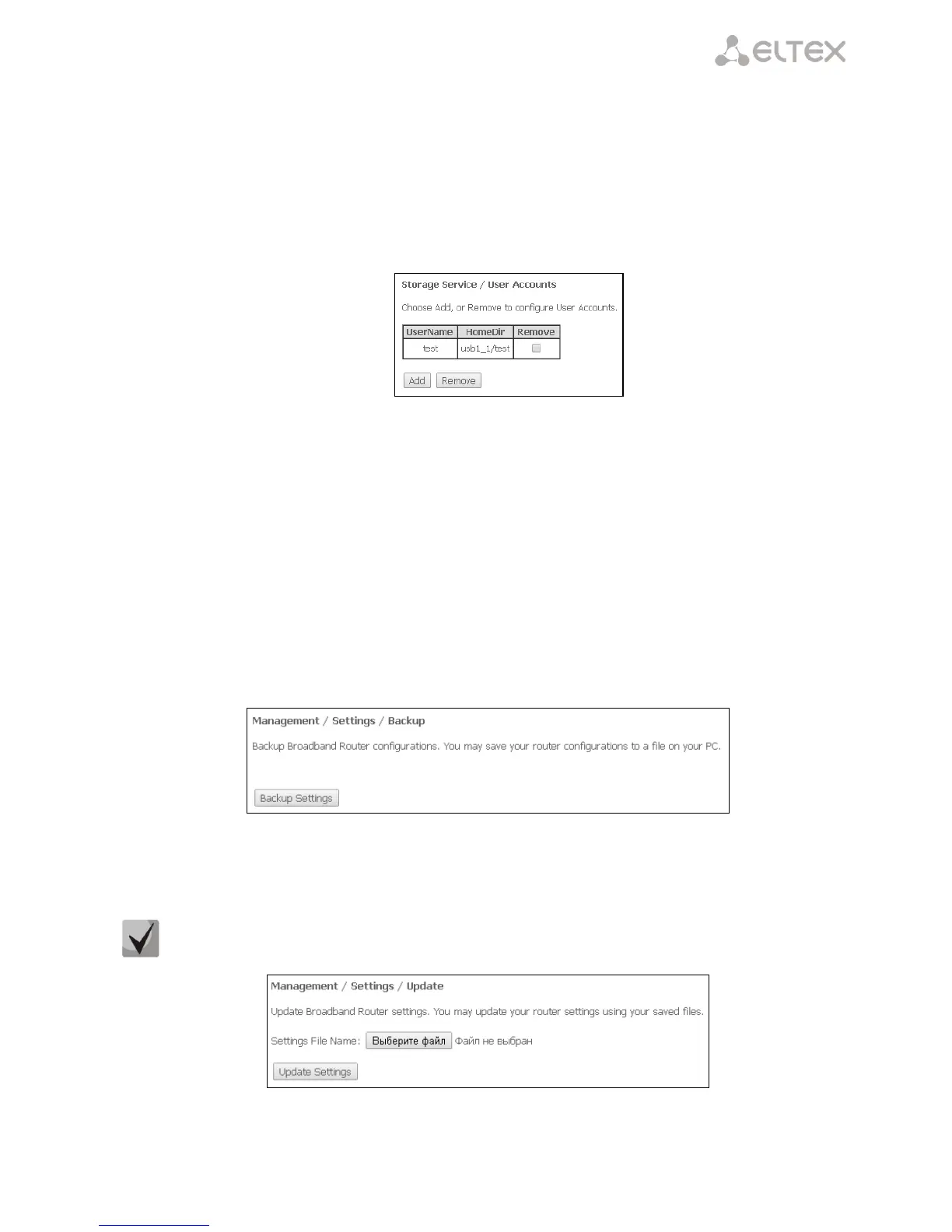 4.5.2 User Accounts submenu. Configuration of Samba users