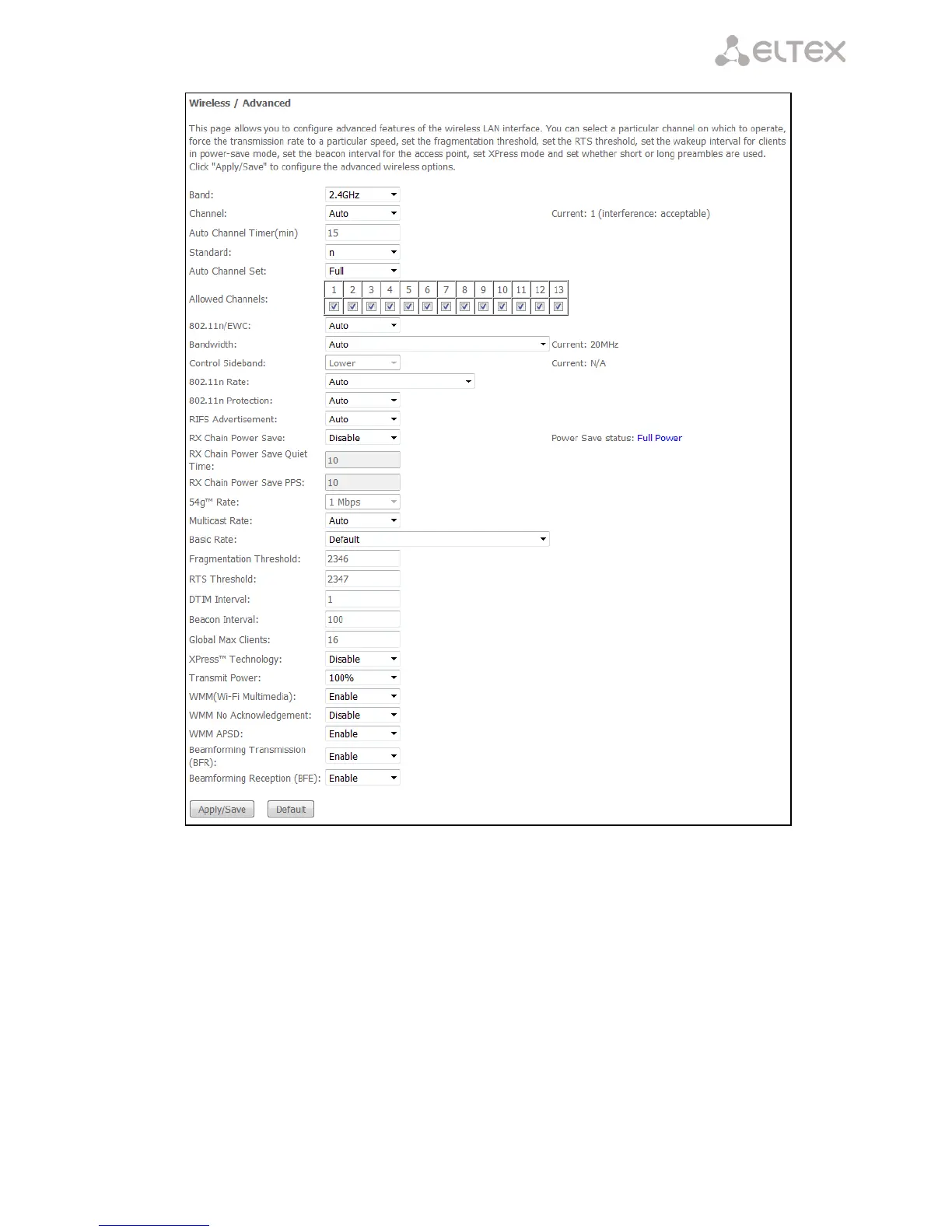– Channel—active channel of the router. Changing operating channel can eliminate interference or