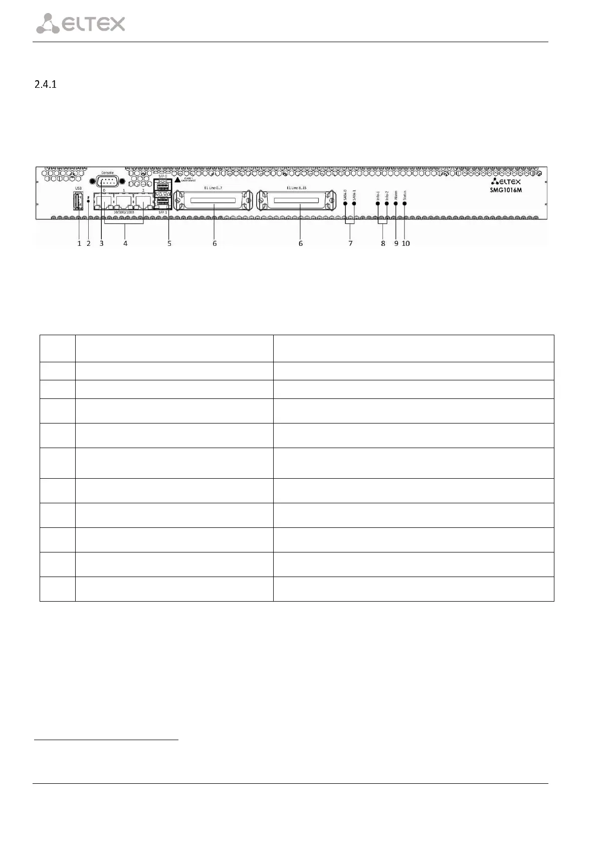 Connectors, LEDs and controls located on the front panel of the device are listed in Table 2.