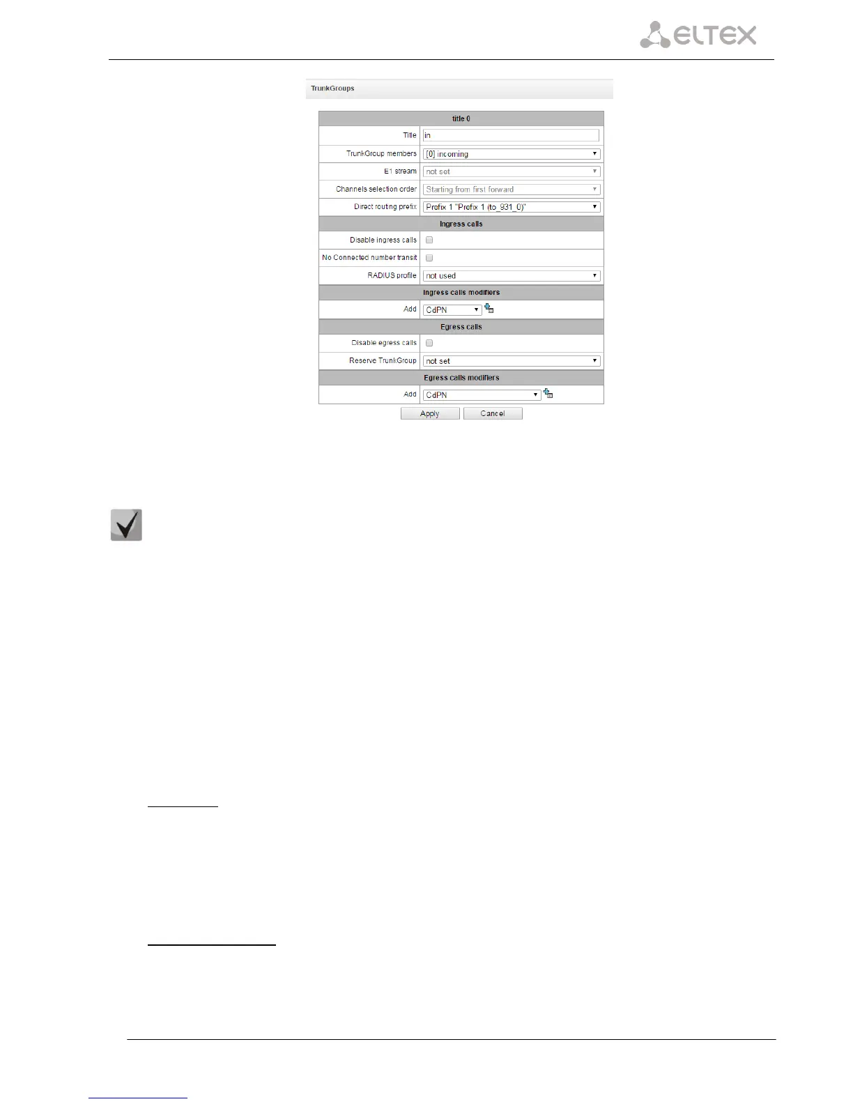 TrunkGroup members—content of the trunk group (E1 stream channels, Q.931 signalling stream,