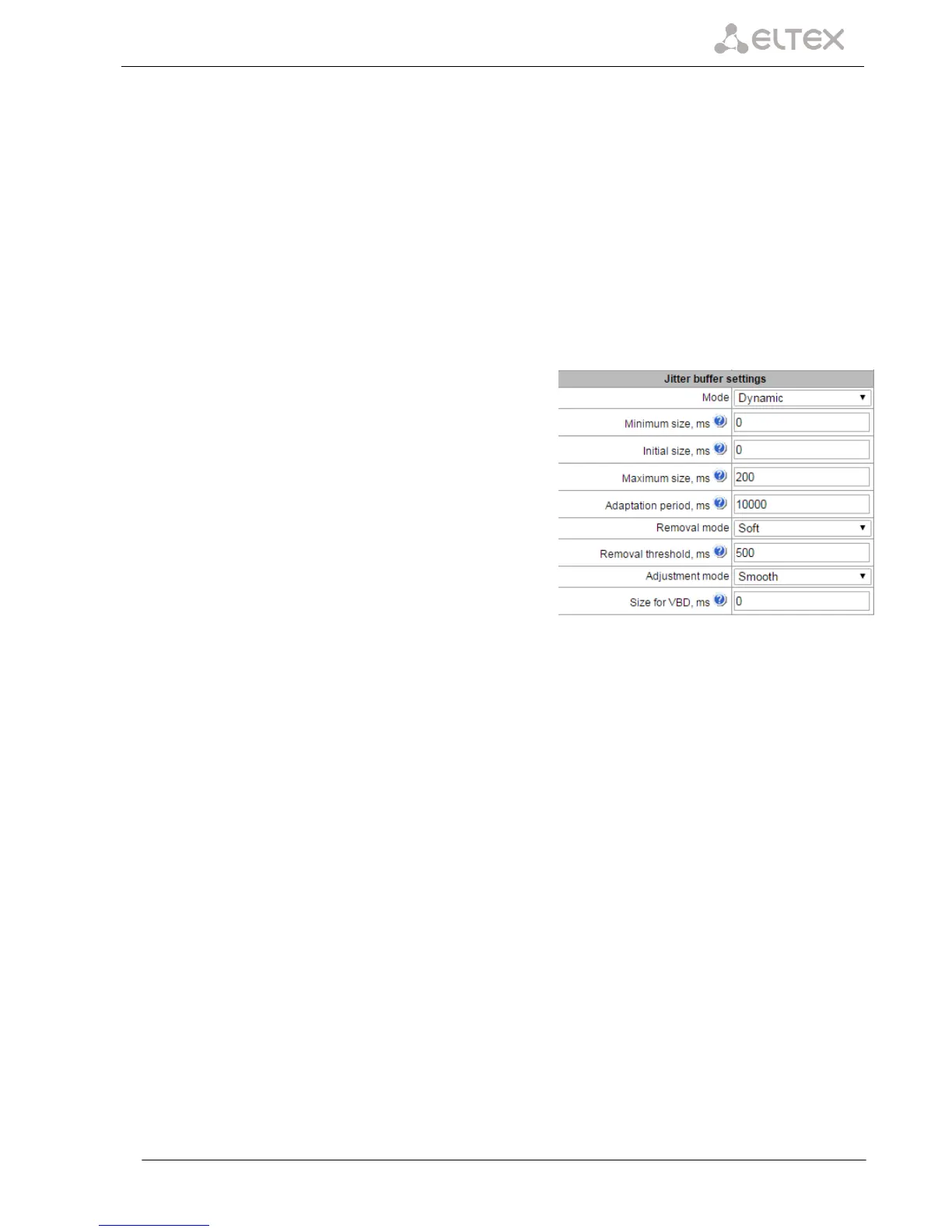 Size for VBD, ms—the size of the fixed jitter buffer used for data transmission in the VBD mode