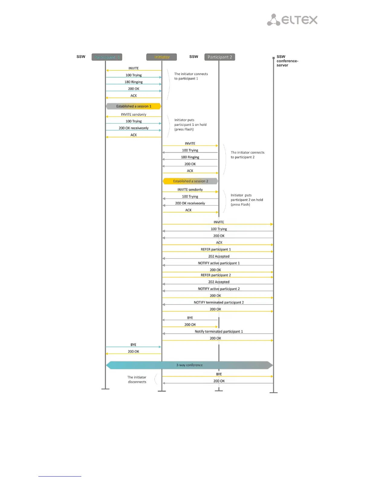 Fig. 13Algorithm of '3-way conference' service performed at the conference server via SIP protocol (REFER to