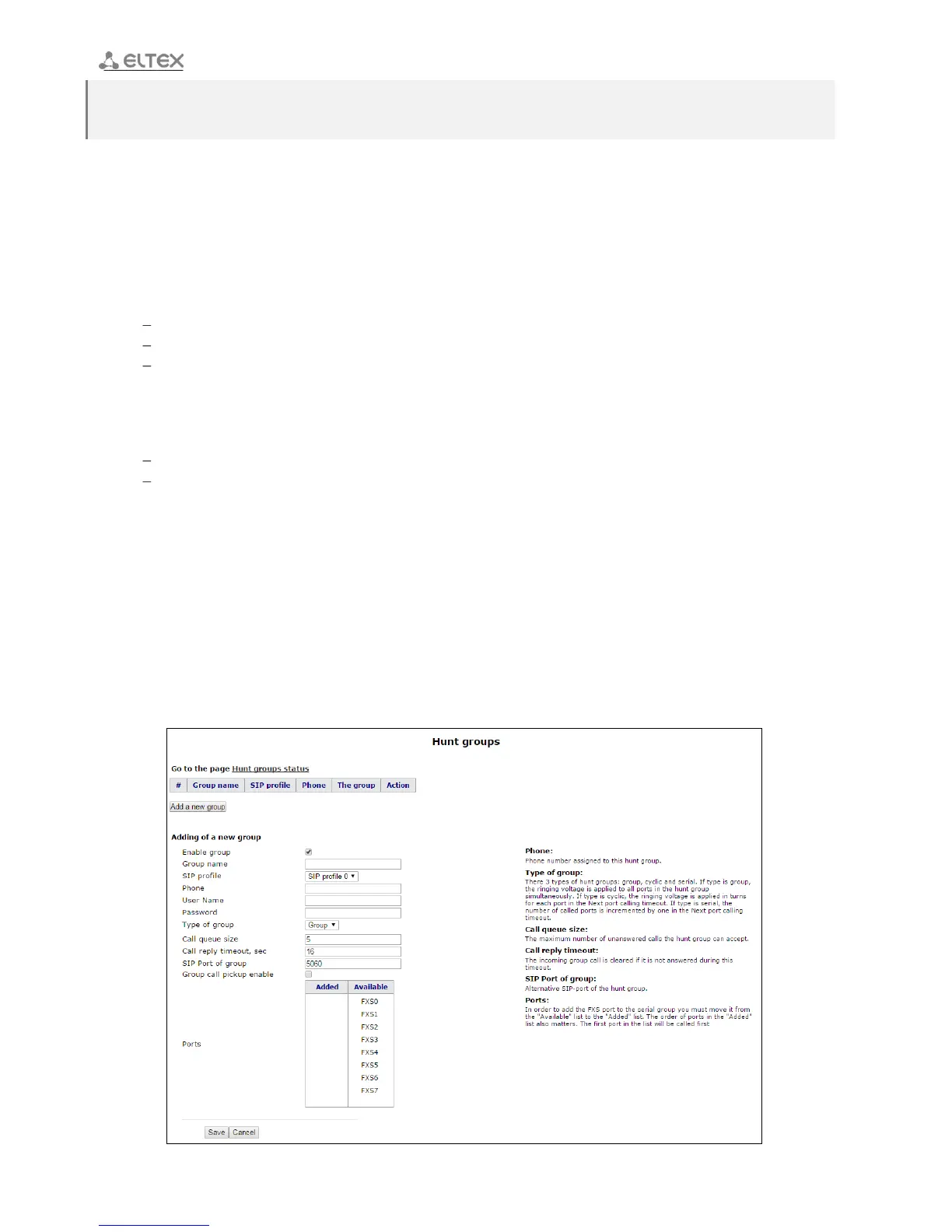 Click ‘Go to the page Hunt groups status’ button to switch to the ‘Status/Telephony’ submenu (section