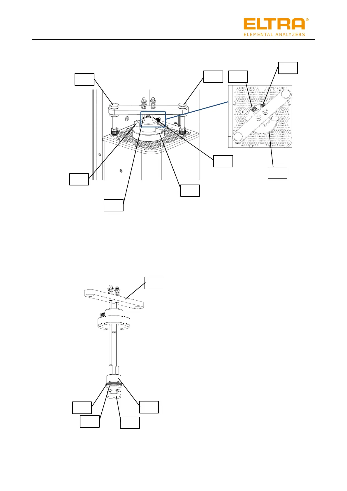 The following diagram shows the mounting plate of the furnace cleaning system: