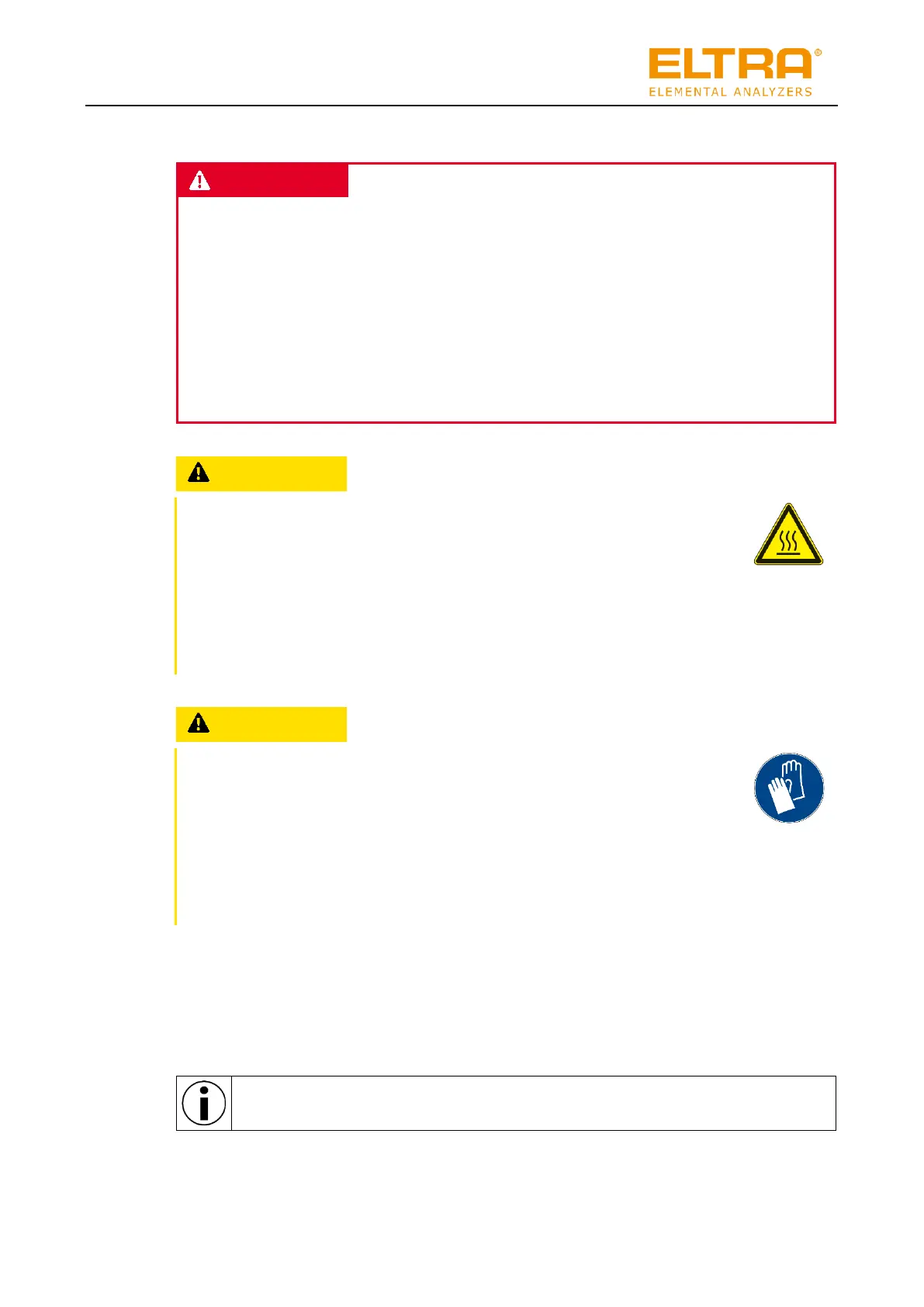• Wear heat-resistant protective gloves when working with hot