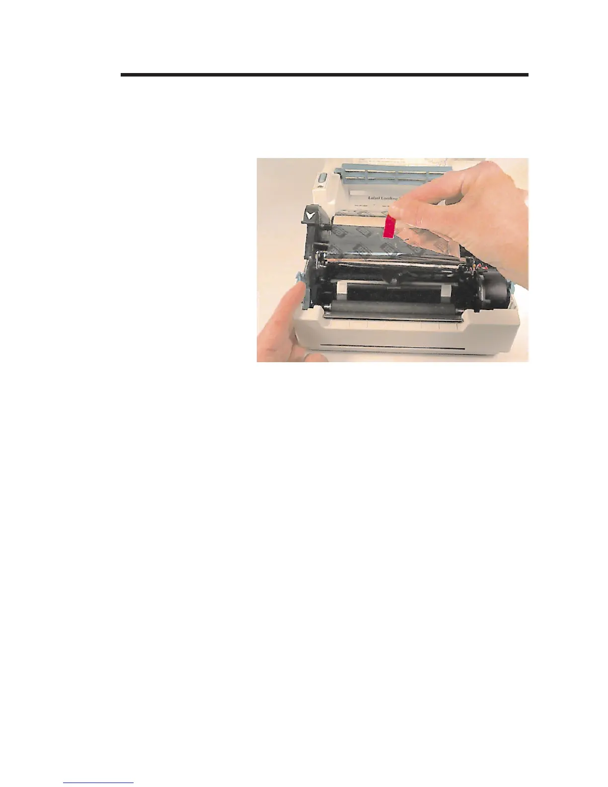 Step Open the print carriage and pull the ribbon