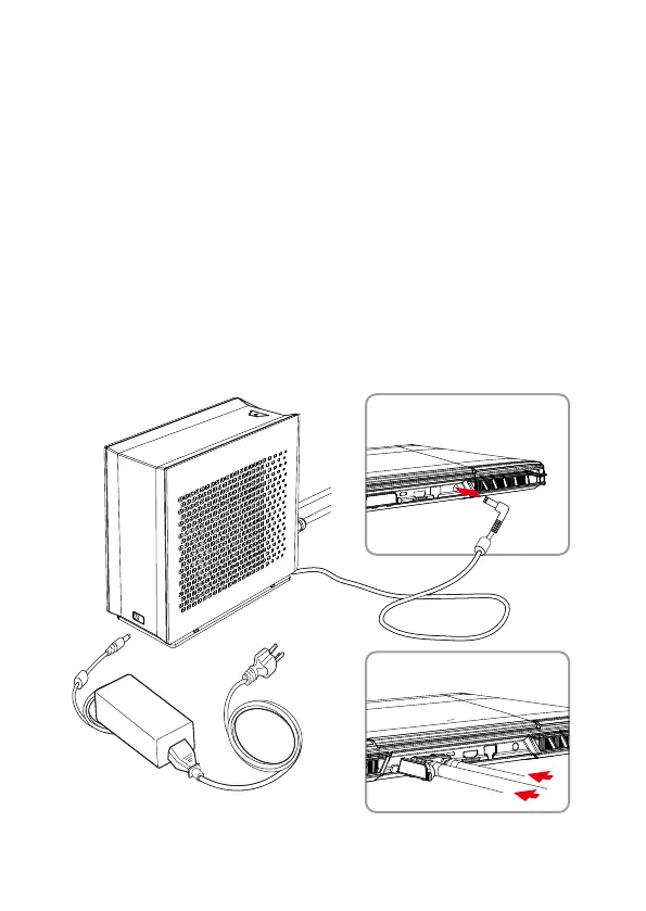 Insert the silver connector in parallel to the laptop. You will hear a small