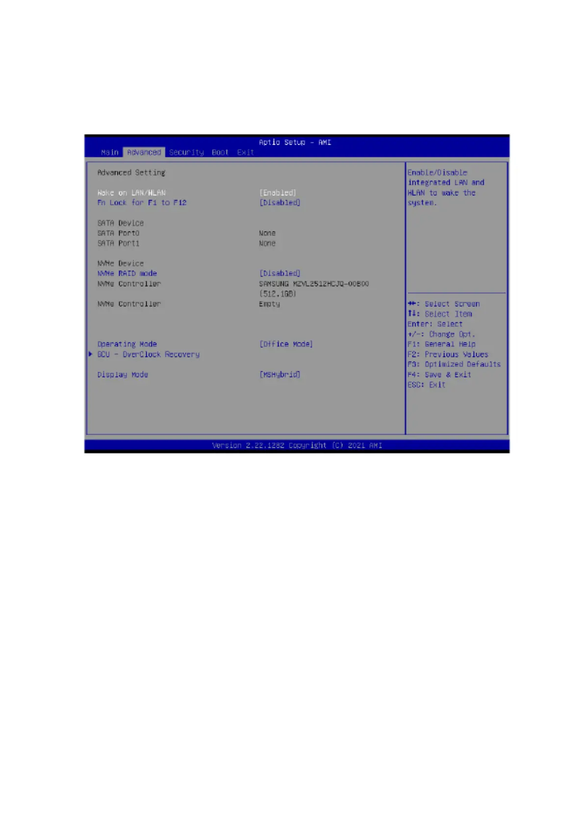 Eluktronics MECH-17 - Advanced Menu