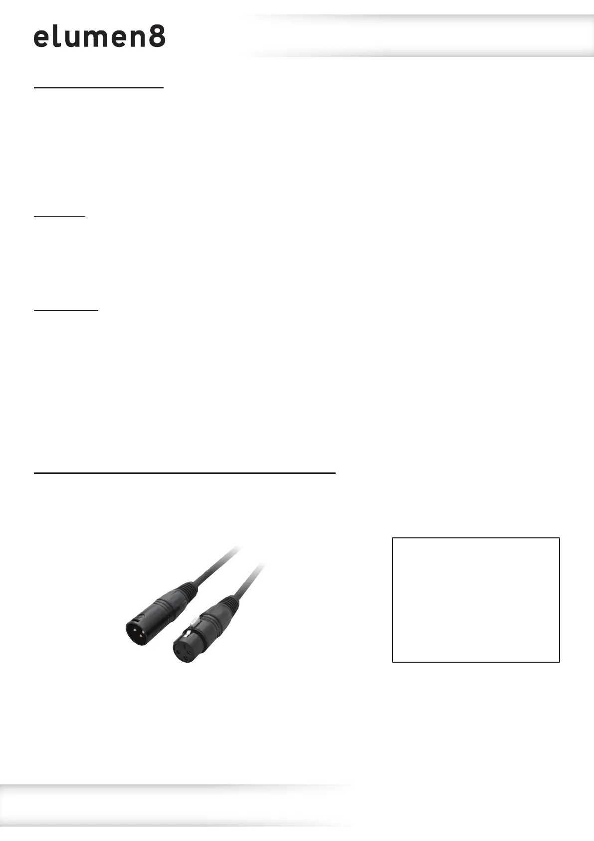 Your unit and your DMX controller require a standard 3-pin XLR connector for data input/output,