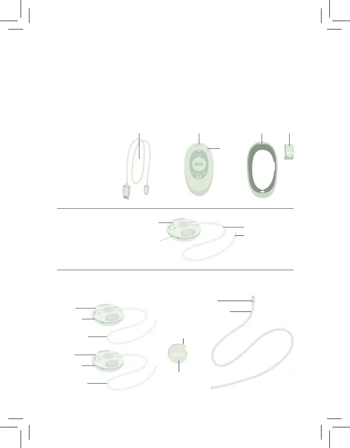 Elvie Stride besr af de dele og det tilbehør, der er vist nedenfor.