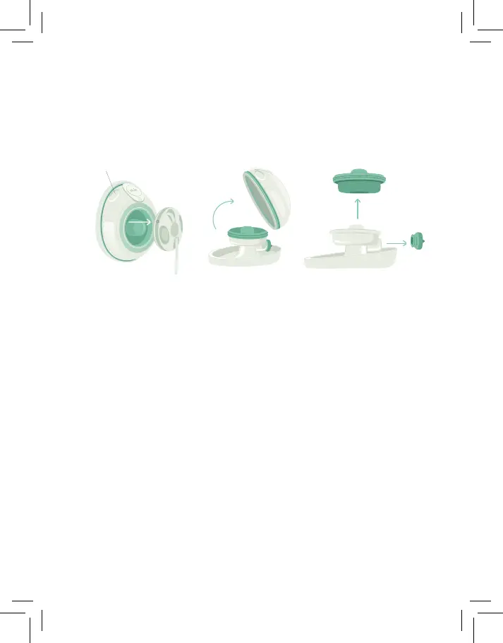 1. 首次使用前,将乳杯密封盖从侧面的凹槽中剥离将其取下。正常清洁过程中