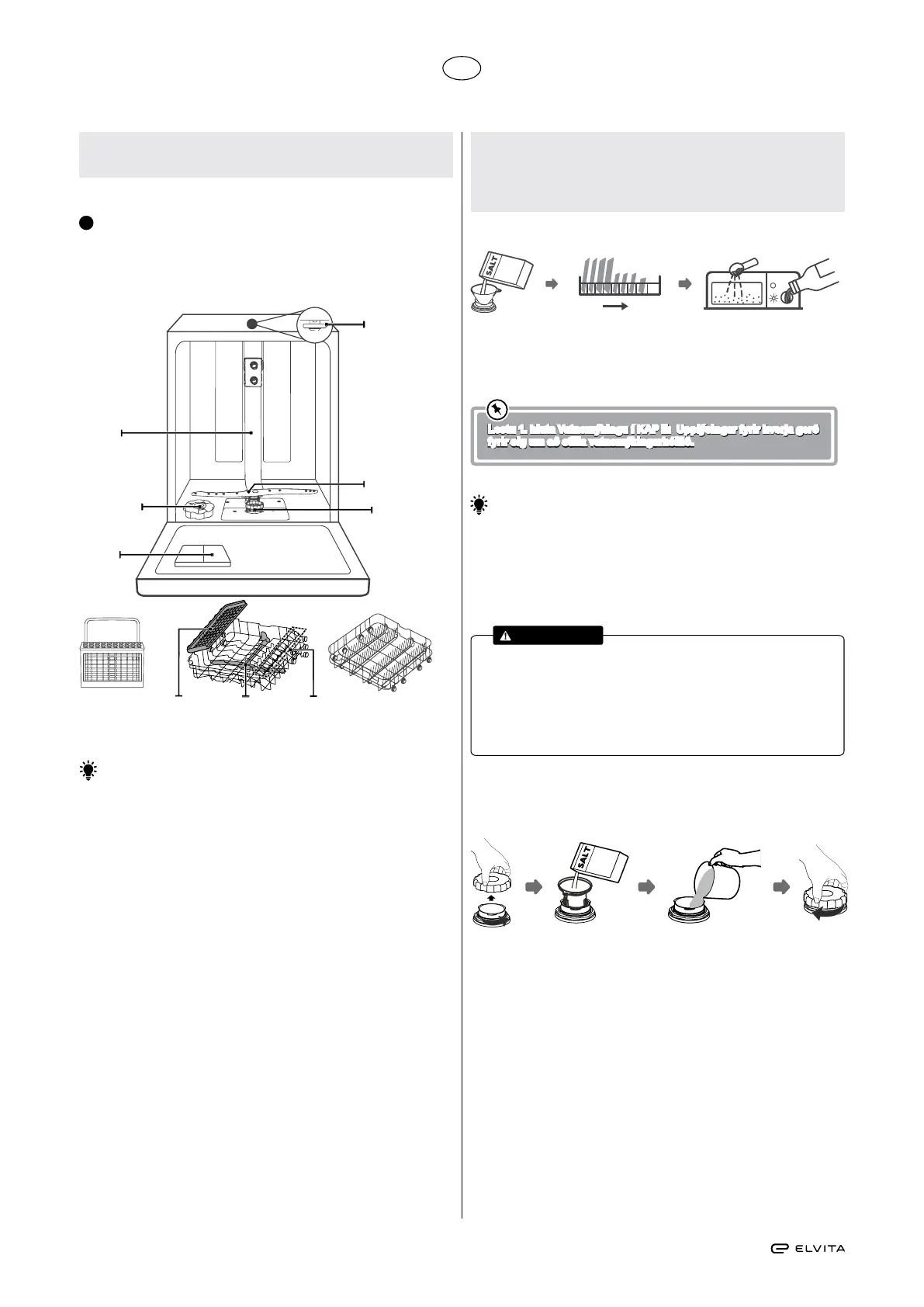 • Notaðu bara salt sem er ætlað uppþvottavélum!