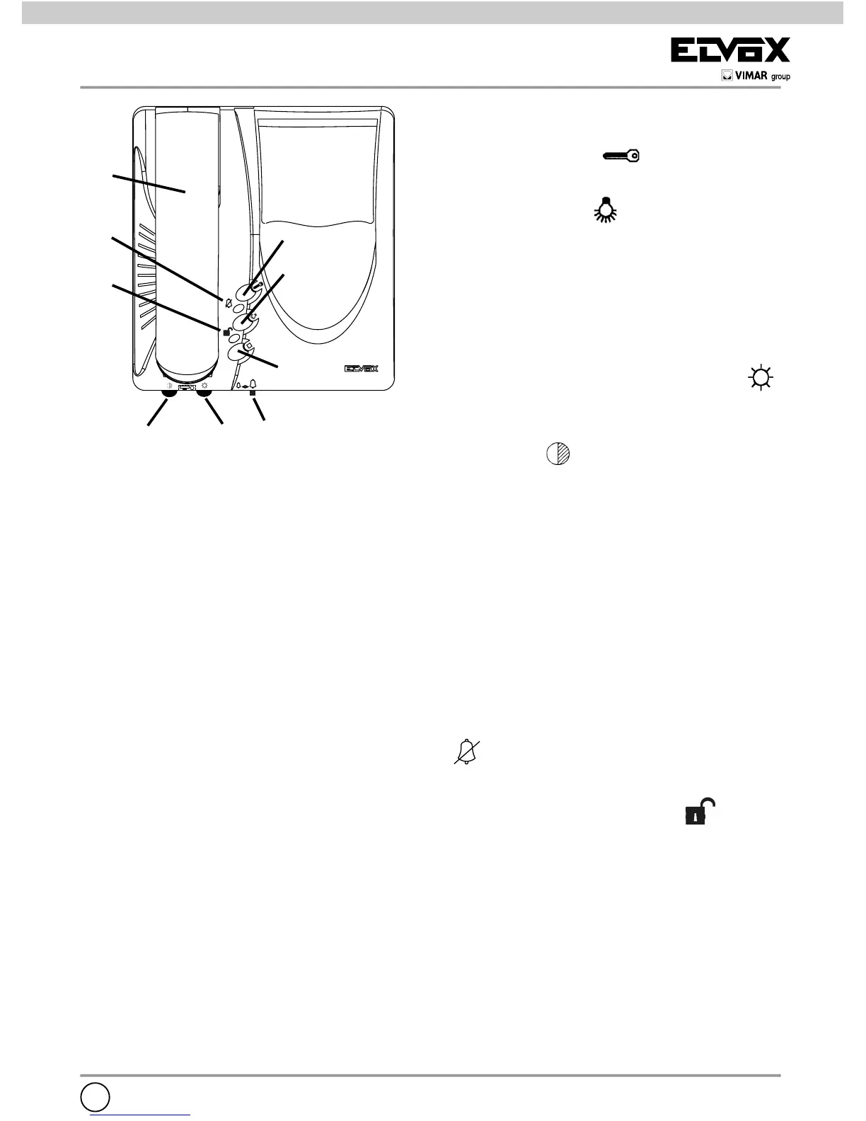 F) KNOB FOR THE CONTRAST/COLOUR