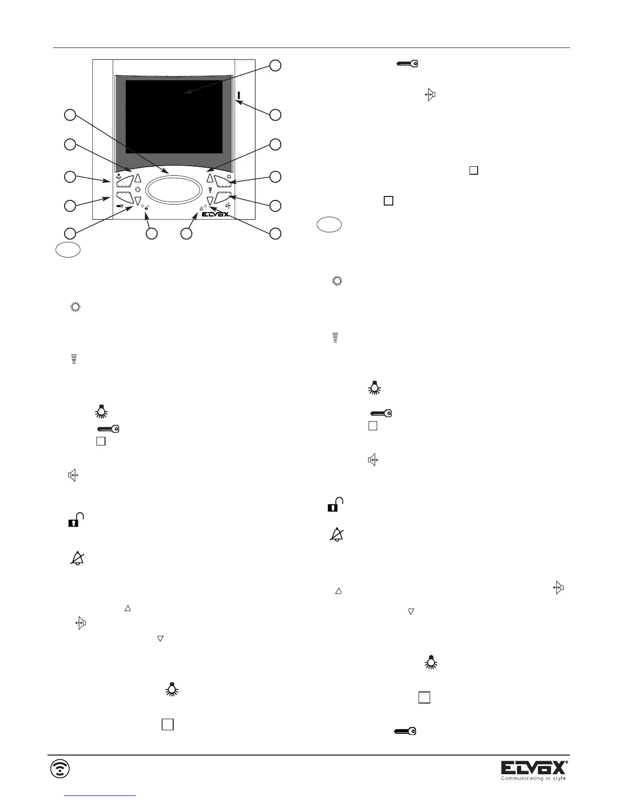 I) Pushbutton : after the call and/or switch-on of the monitor, hold the push-