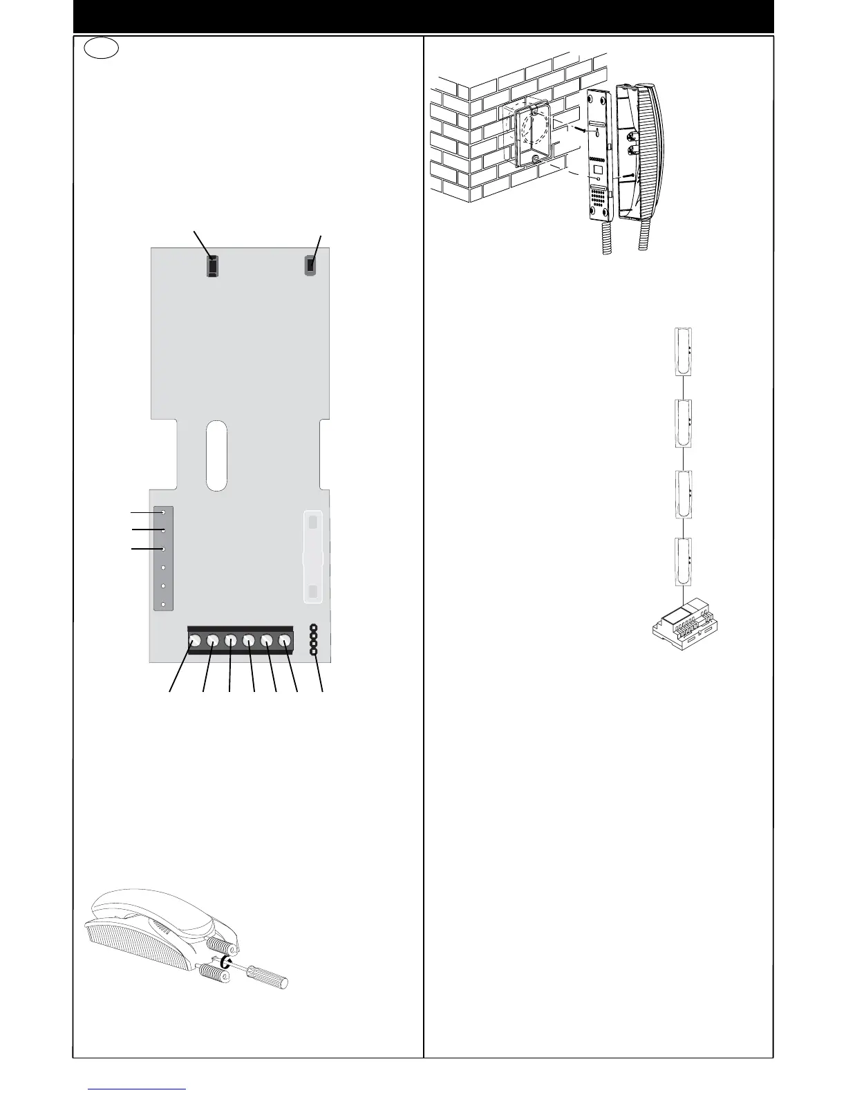4, 6P) Conexión para pulsador de llamada desde fuera de la puerta.