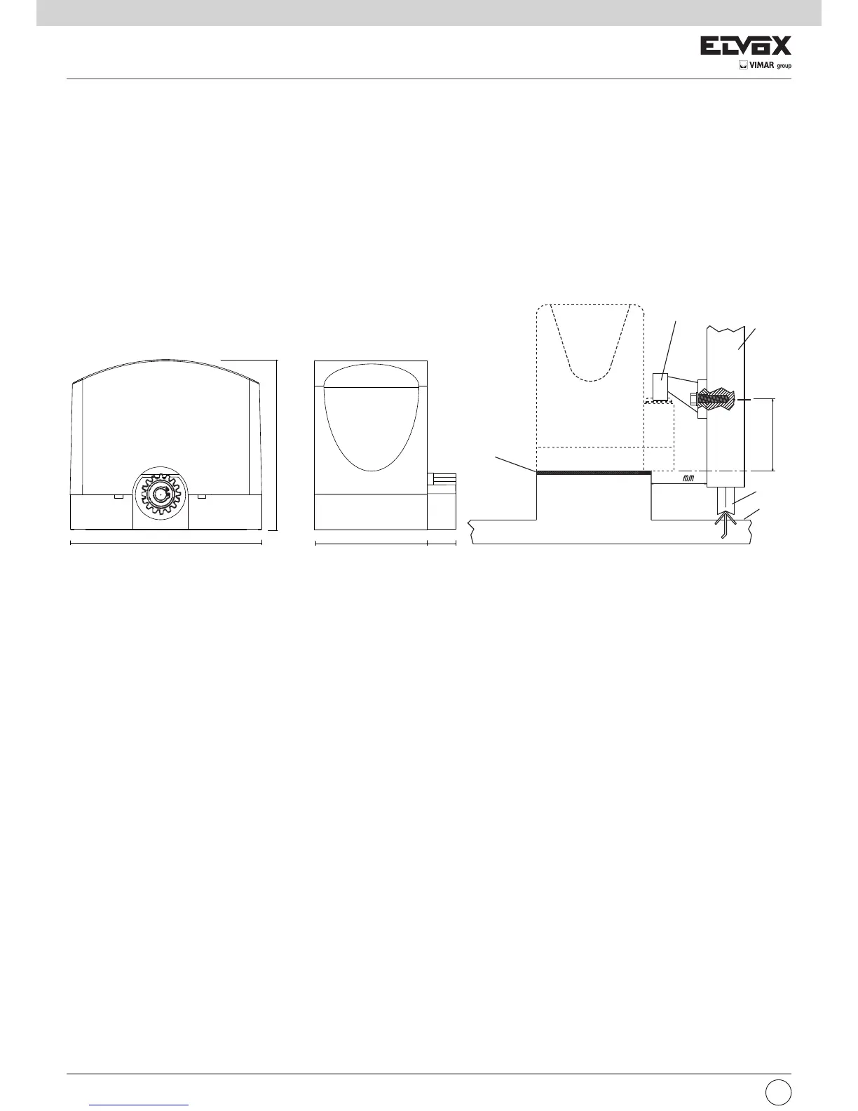 re in bassa tensione, 12 Vcc, e uno sblocco meccanico che permette di aprire e chiudere il cancello manualmente. Il motore aziona un gruppo riduttorre,