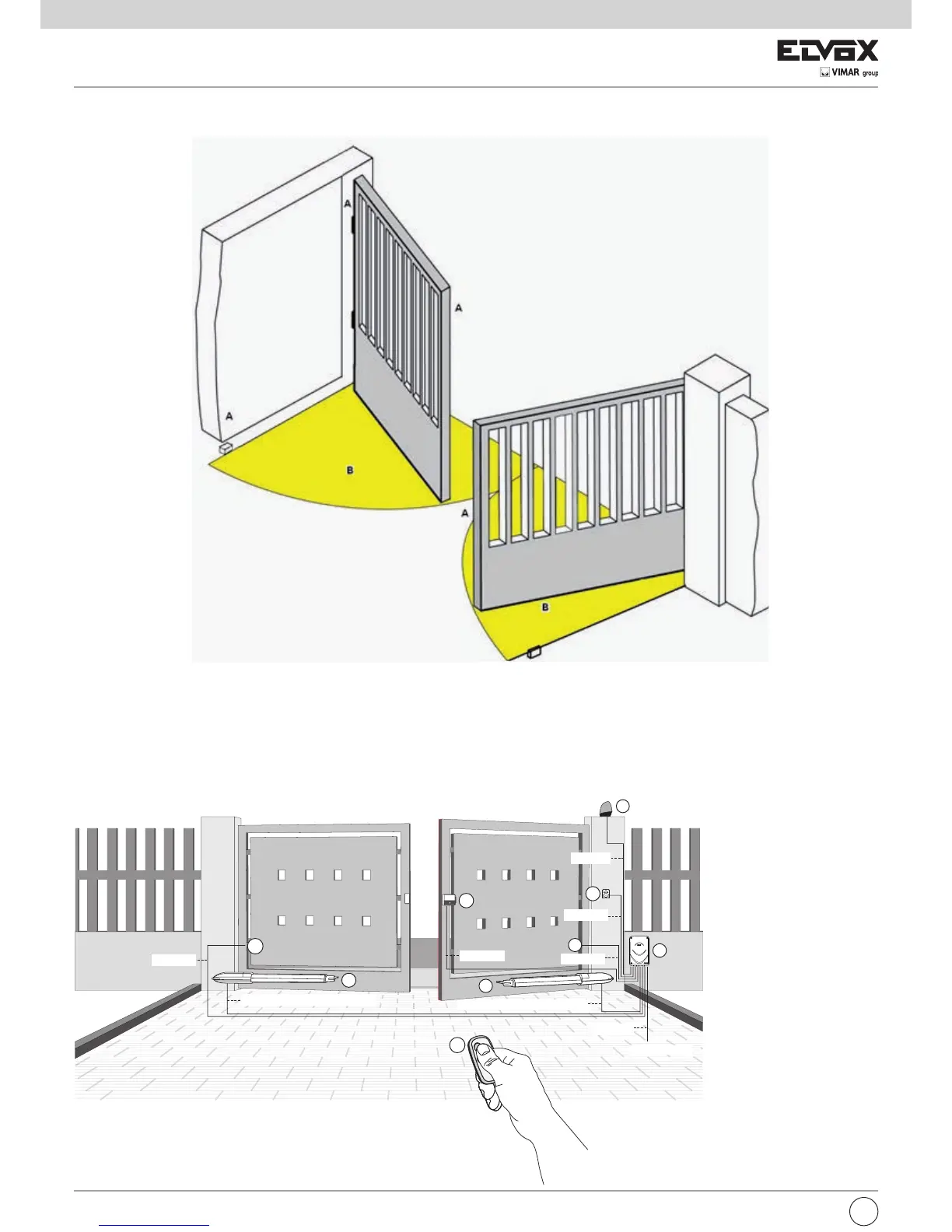 Before starting to install the automatic gate system it is necessary to evaluate all possible points of danger during the movement of the gate. The figure