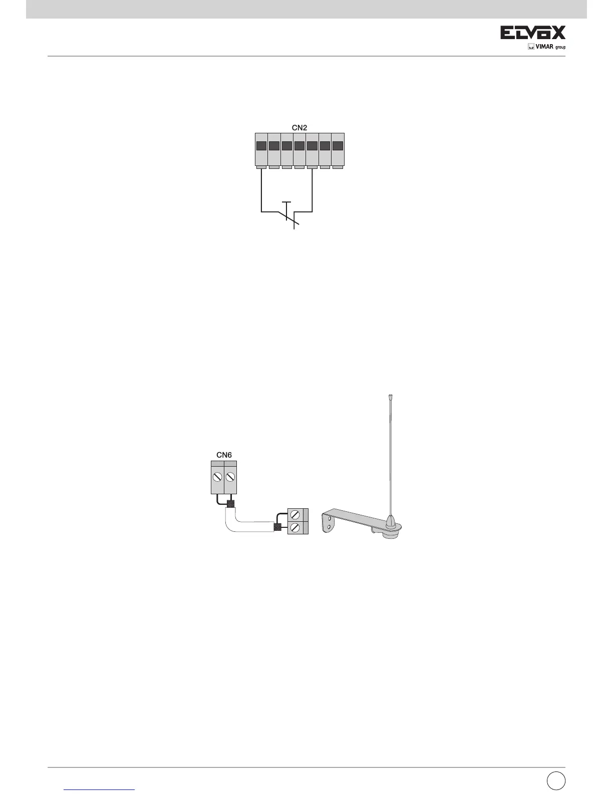 επαφή κανονικά κλειστή. Το άνοιγμα της επαφής προκαλεί τη διακοπή της κίνησης της καγκελόπορτας και την αναστολή του διαστήματος αυτόματου