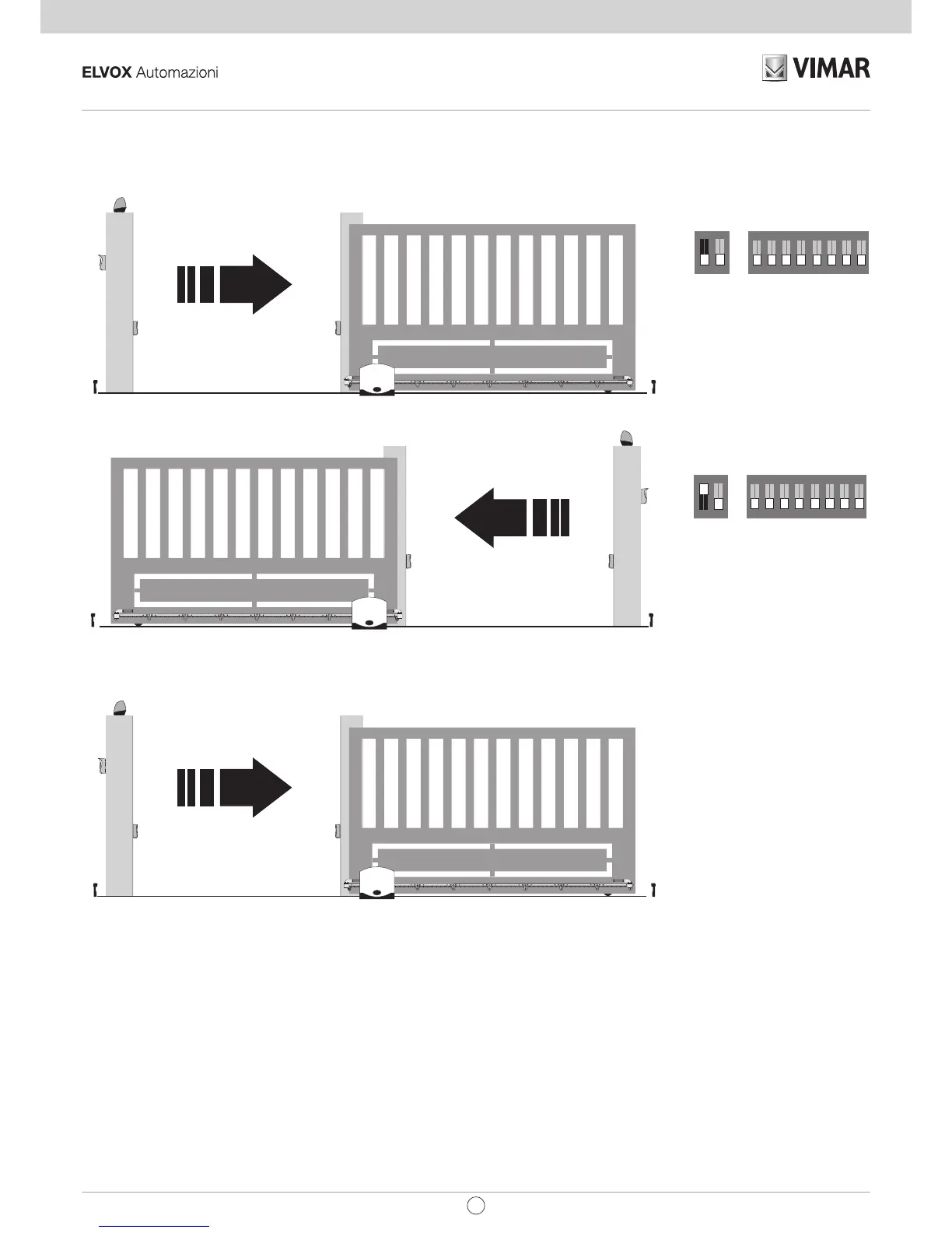 Selección del sentido de apertura: la central está provista de conmutadores DIP para seleccionar la dirección de apertura de la cancela.