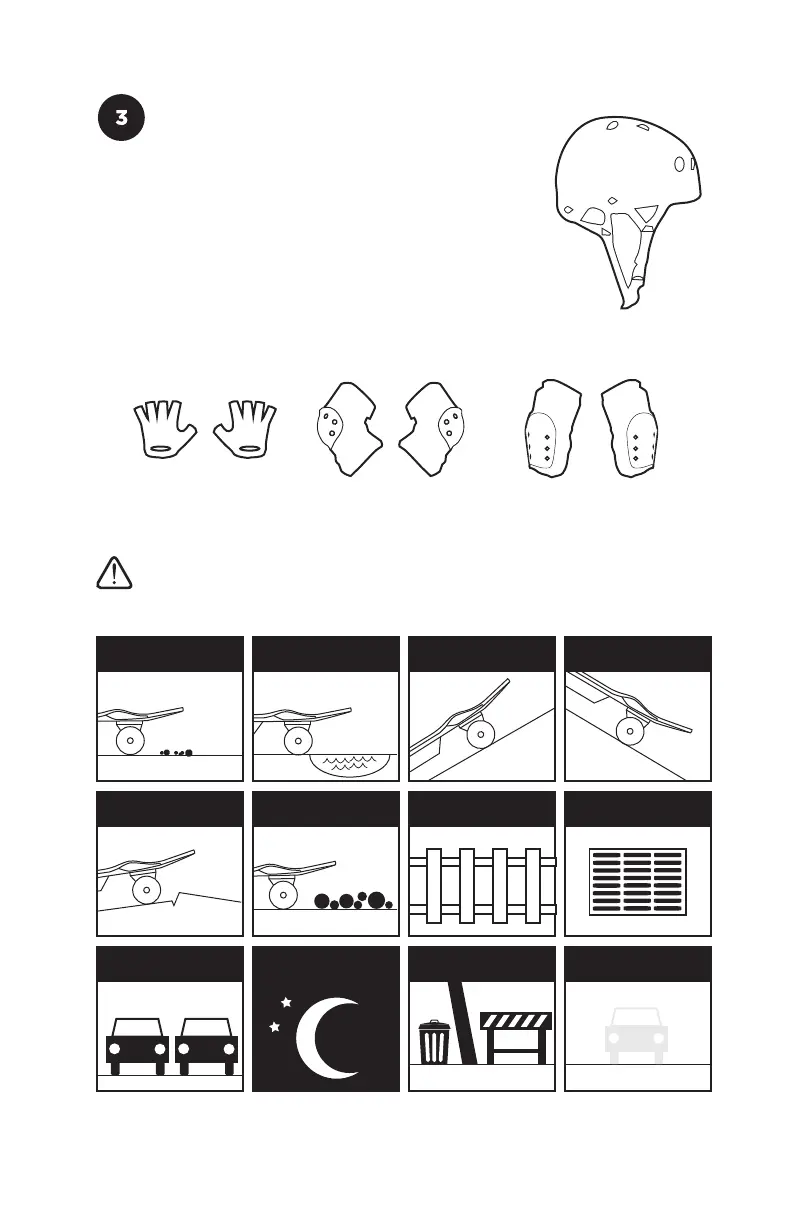 • Read the warnings on the skateboard and at the