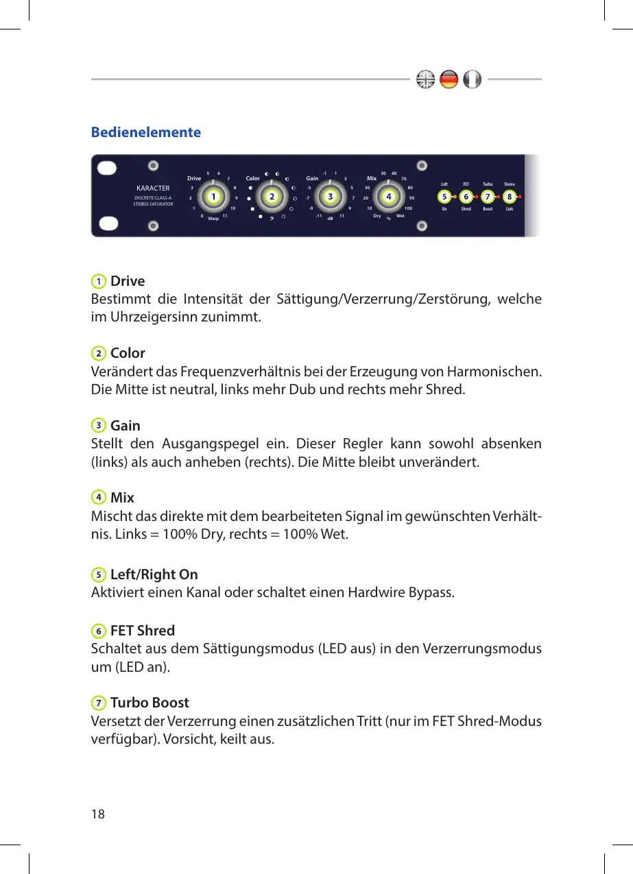 Schaltet aus dem Sättigungsmodus (LED aus) in den Verzerrungsmodus