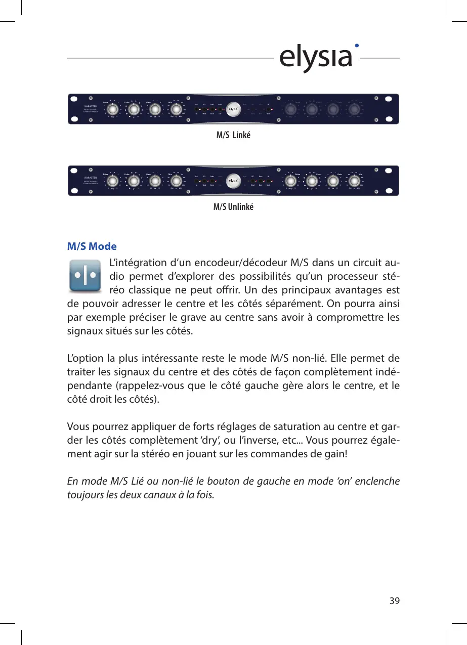 En mode M/S Lié ou non-lié le bouton de gauche en mode ‘on’ enclenche