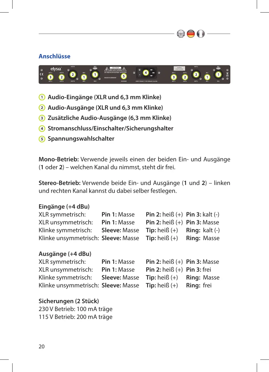 XLR symmetrisch: Pin 1: Masse Pin 2: heiß (+) Pin 3: Masse