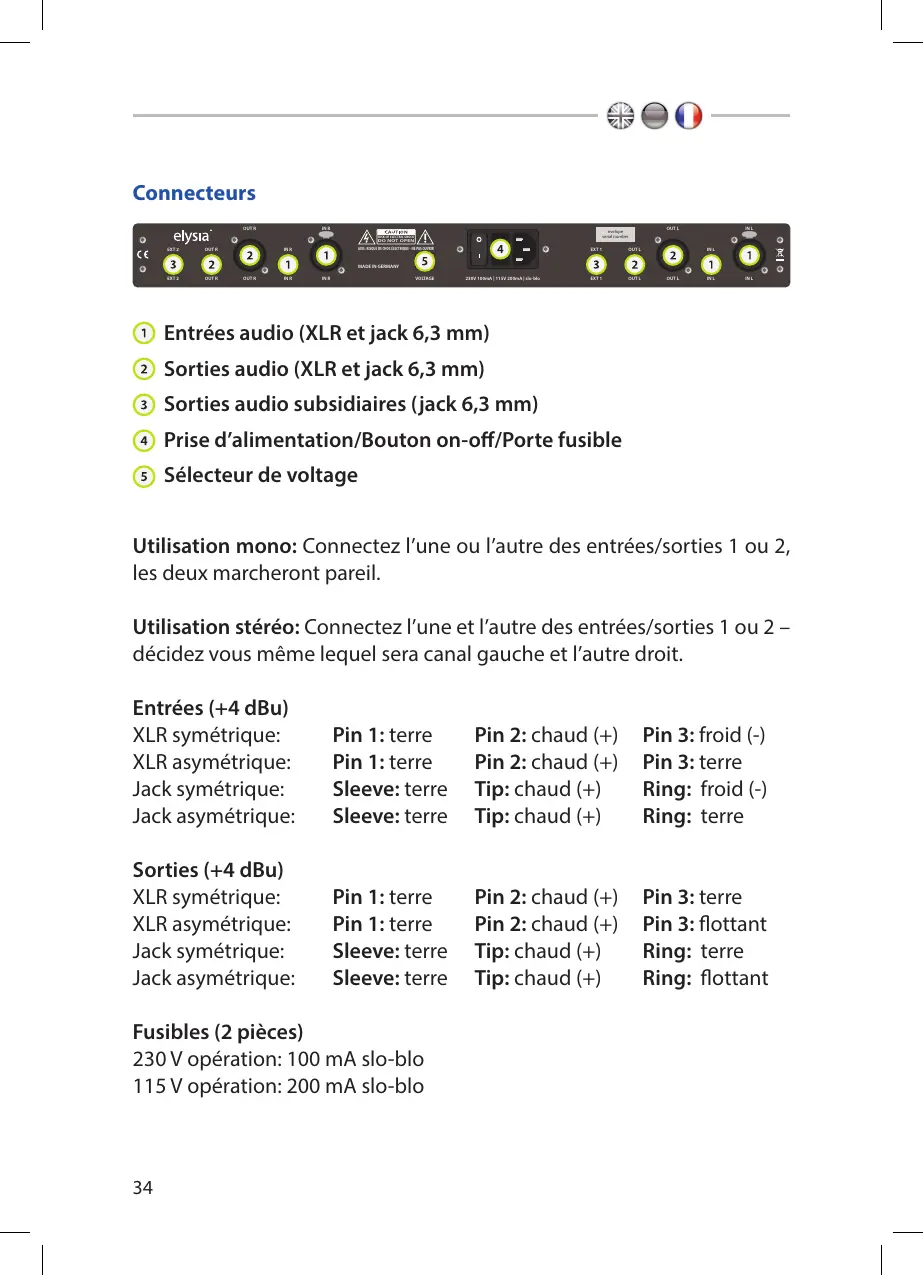 XLR asymétrique: Pin 1: terre Pin 2: chaud (+) Pin 3: terre