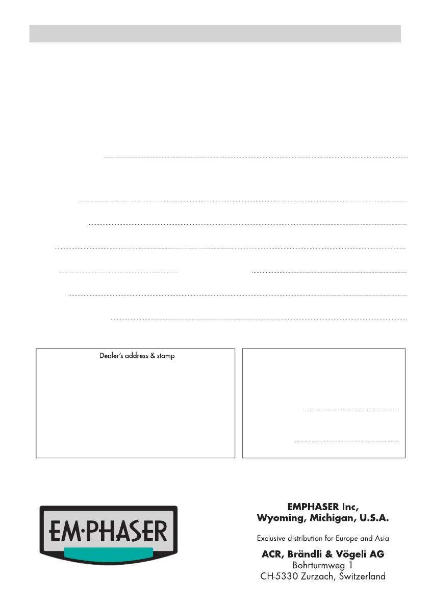 EM Phaser ECP25xT4 - Warranty Card; Registration Details