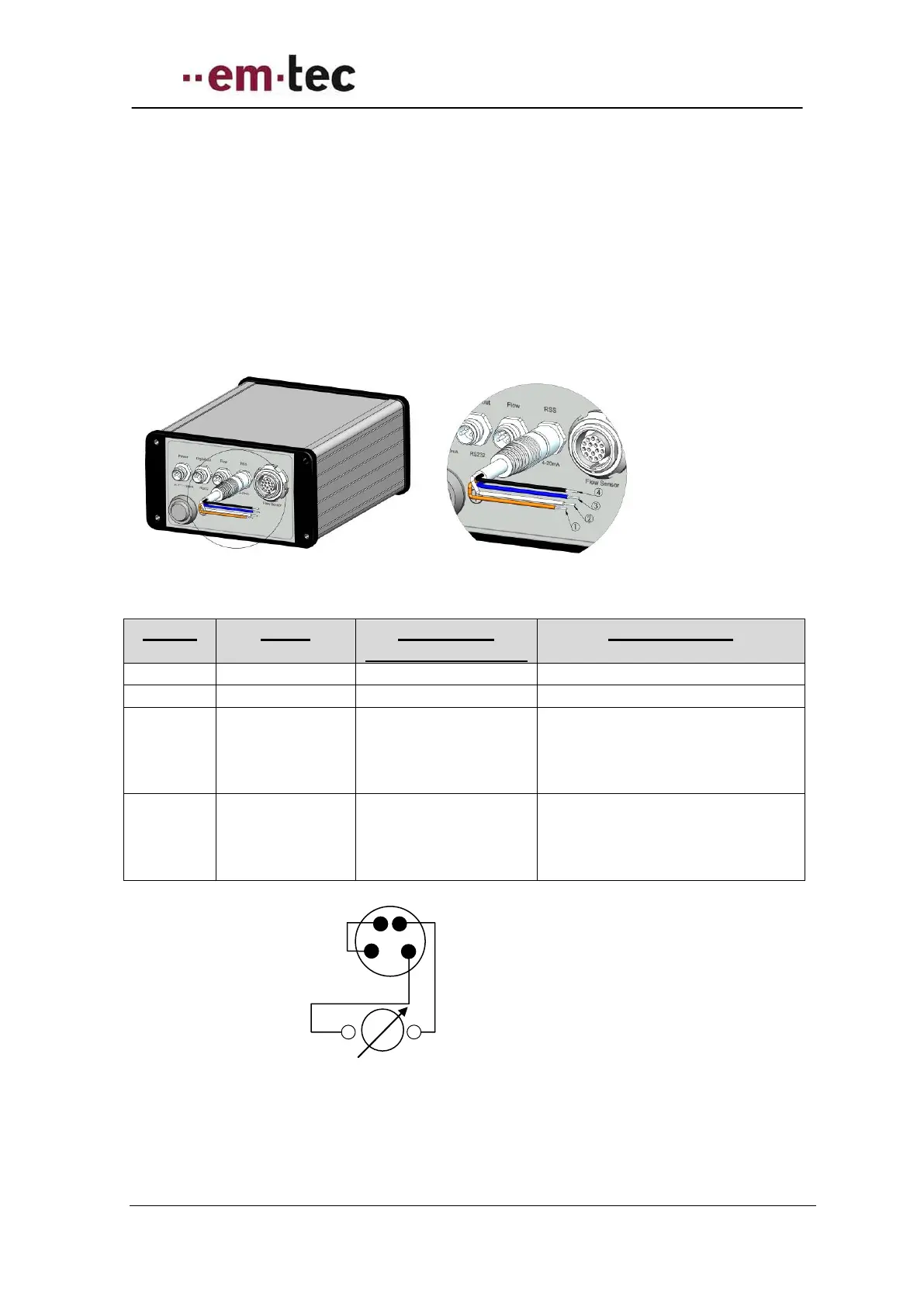 Figure 17: Schematics - looking at pins of rear of flow meter of either Flow or RSS socket