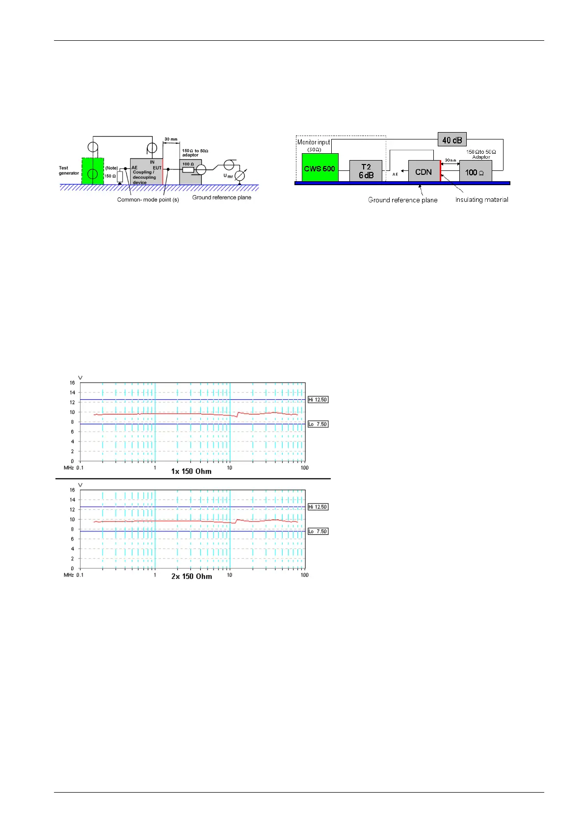 - The tolerance of the applied signal according to IEC 61000-4-6 is ± 25%. The figure below shows two CDN M3