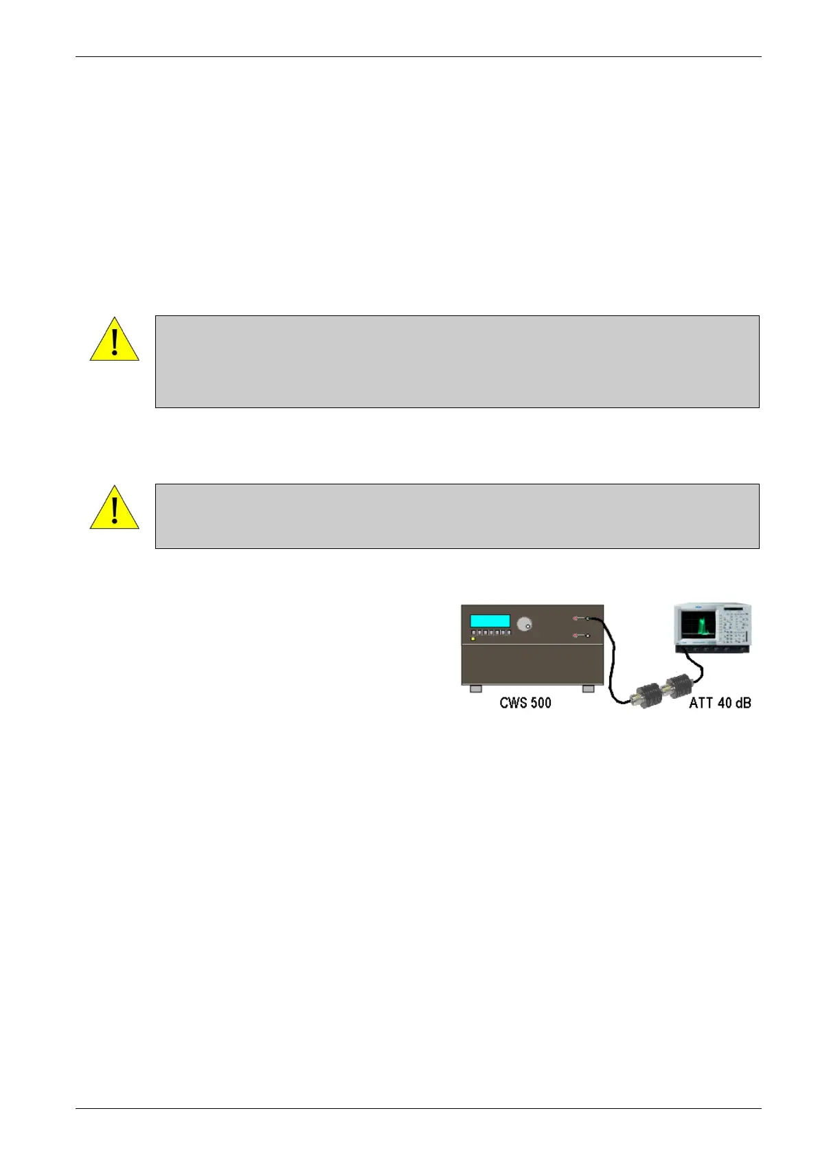 - Connect the RF-output of the CWS 500N2 to the 40dB-attenuator or an adequate attenuator.
