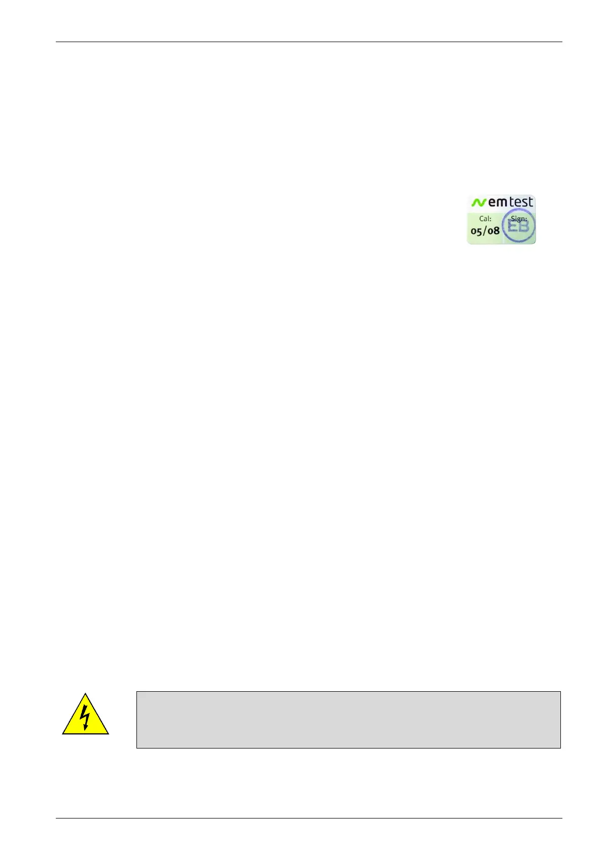The EM Test equipment are calibrated in the factory and marked with a calibration