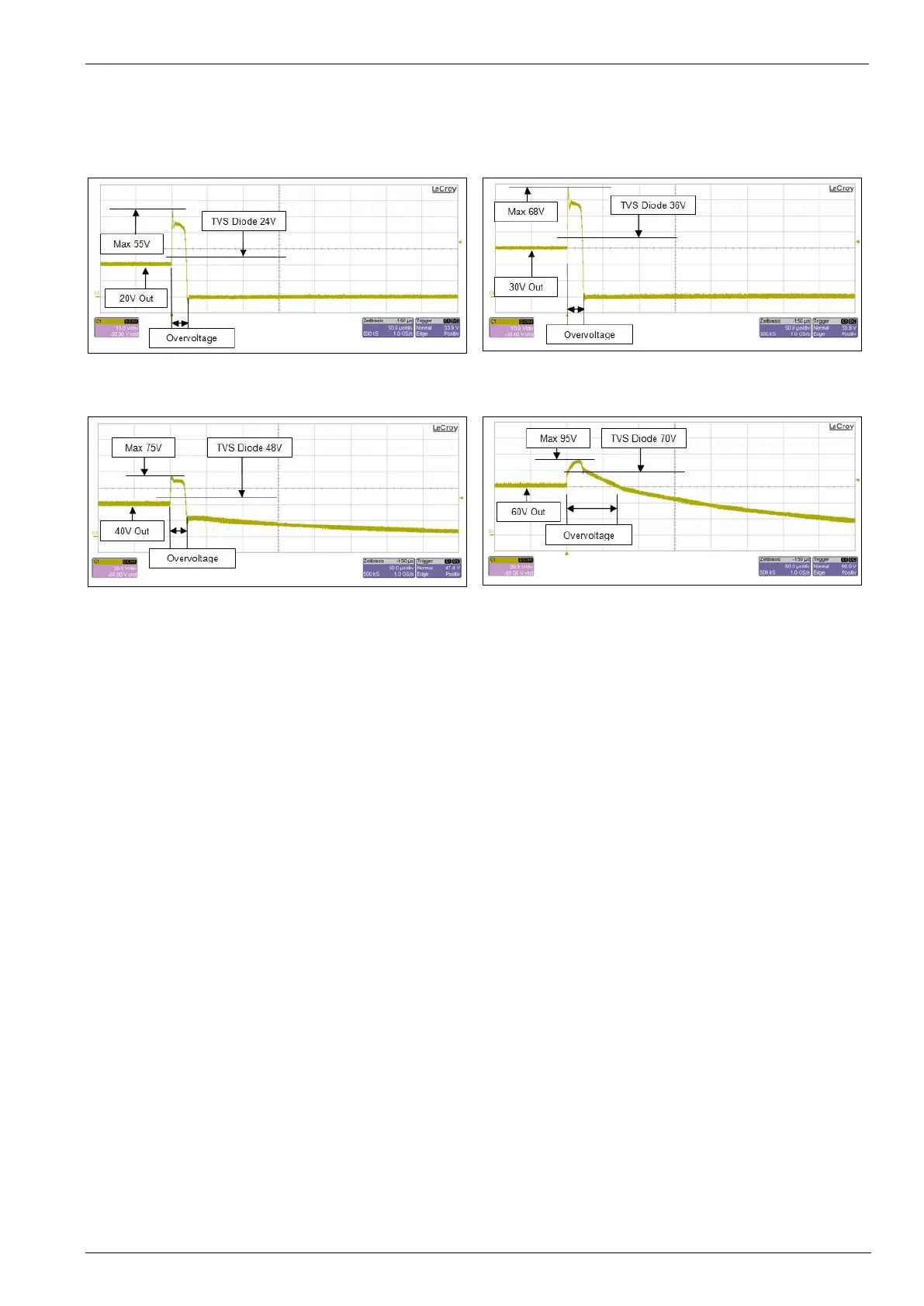 The following pictures show the typical behavior of the crowbar protection in case of an overvoltage.