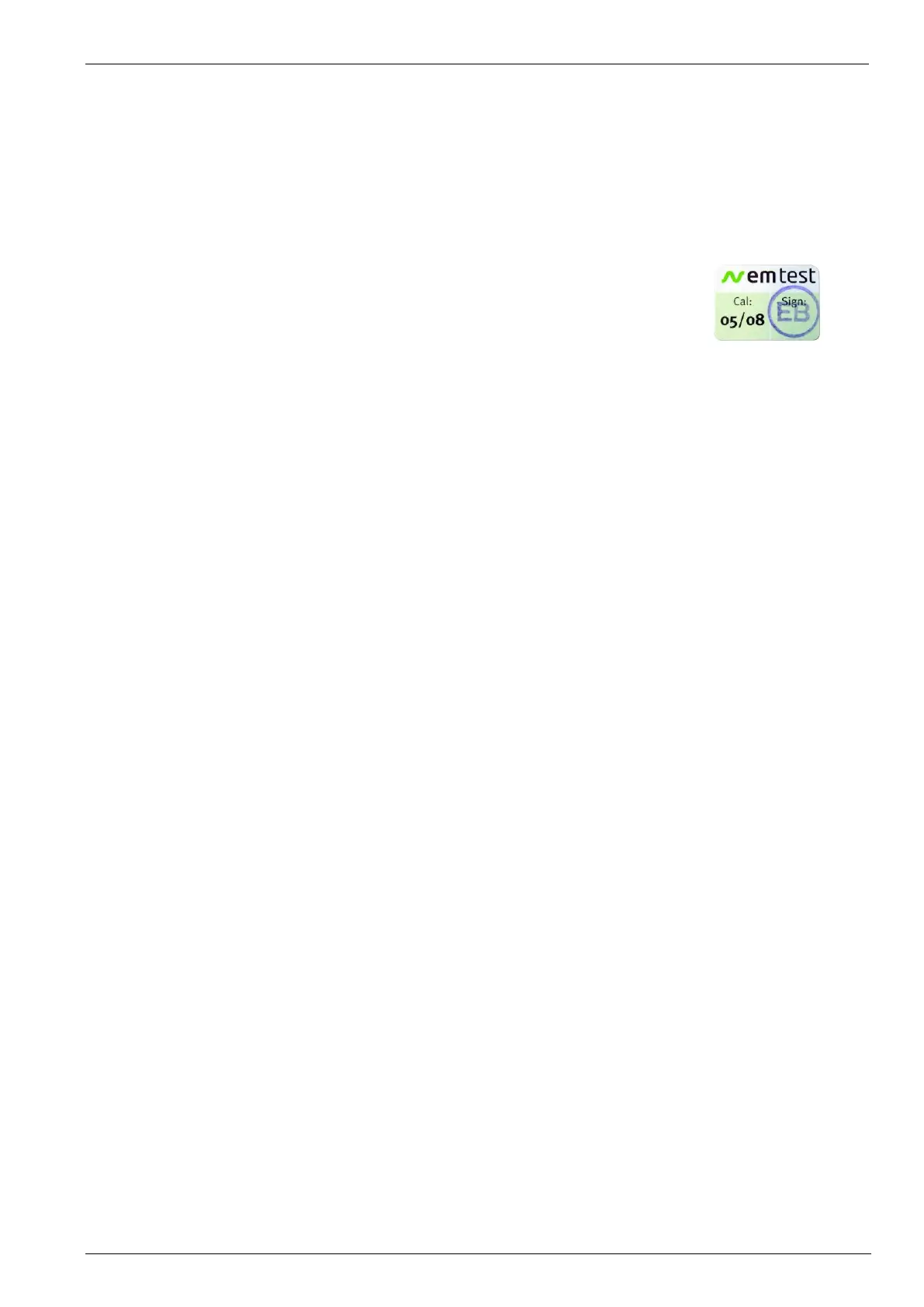 The EM Test equipment are calibrated in the factory and marked with a calibration