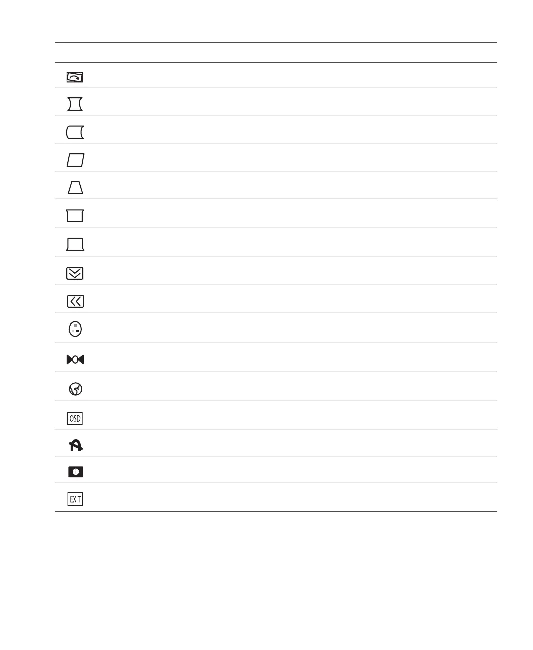 TRAPEZOID. Increases or decreases the trapezoid distortion of the display image.