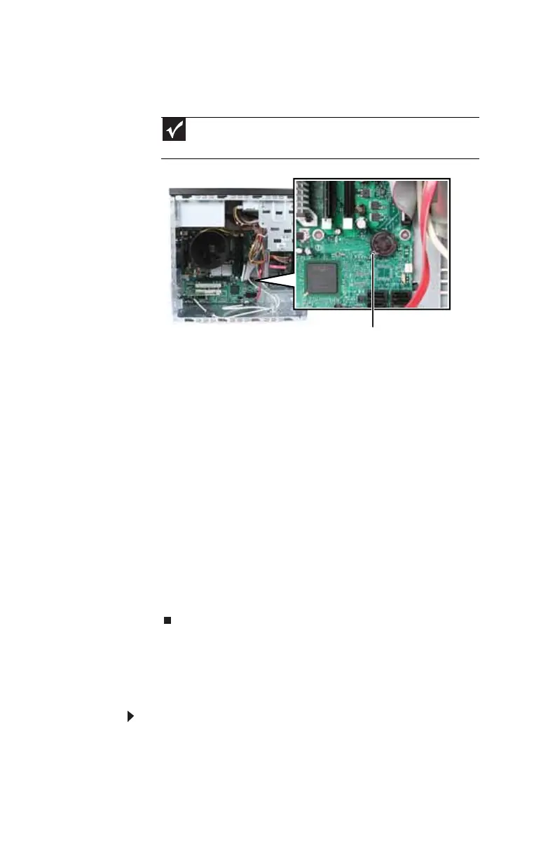 7 Locate the old battery on the system board and note its