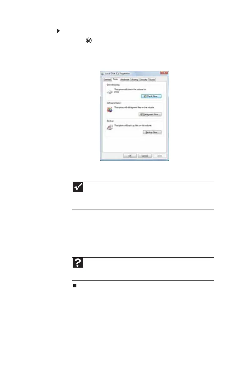 For more information about checking the hard drive for errors,